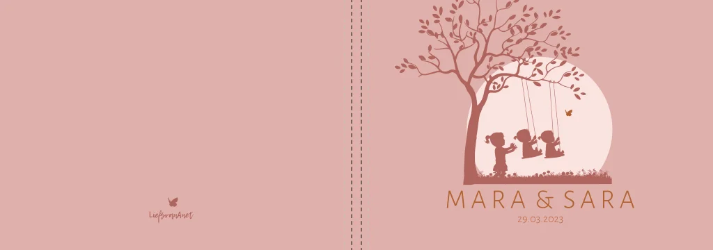Kraambezoekboek tweeling en zusje op schommel met boom