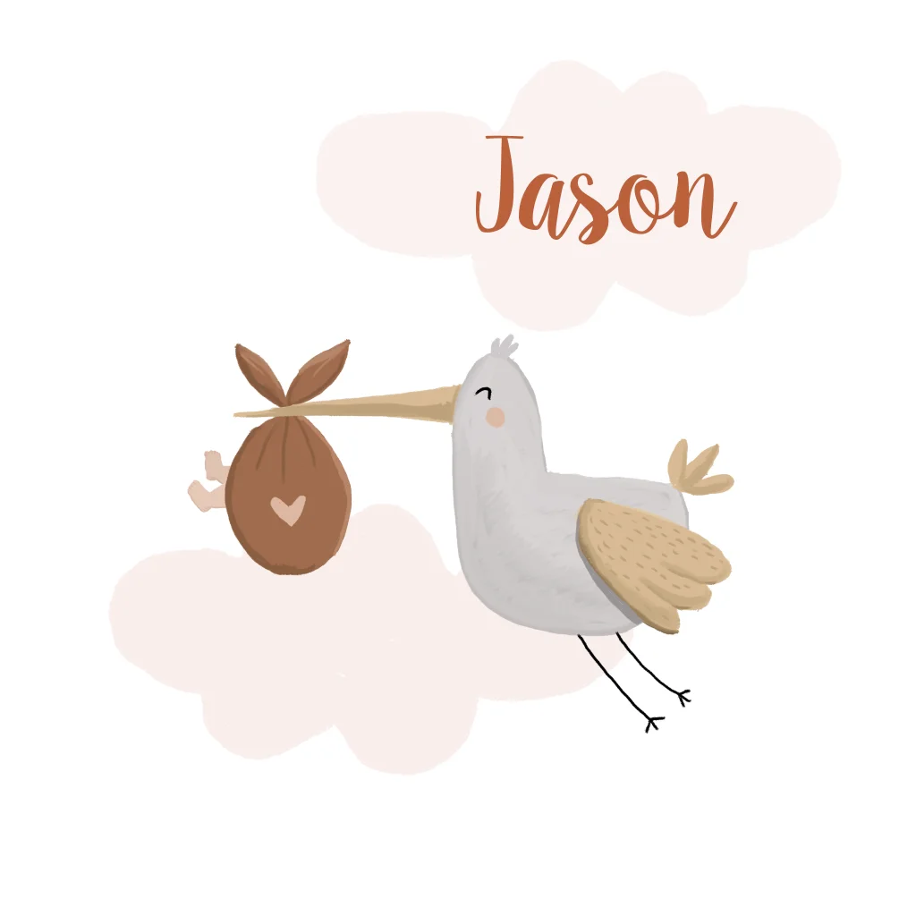 Raambord dubbel ooievaar met baby meisje is een uniek geboortekaartje voor jongens. Het kaartje is getekend in watercolour en is vrolijk en lief.