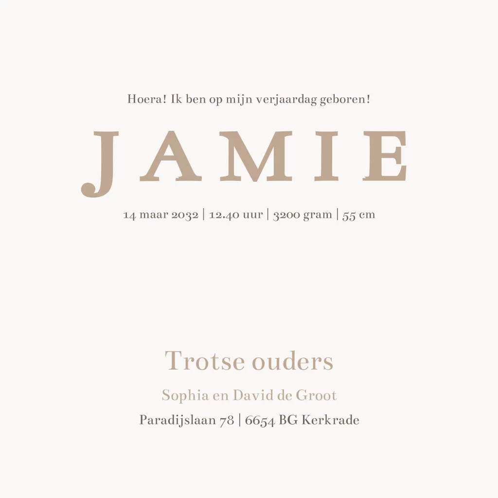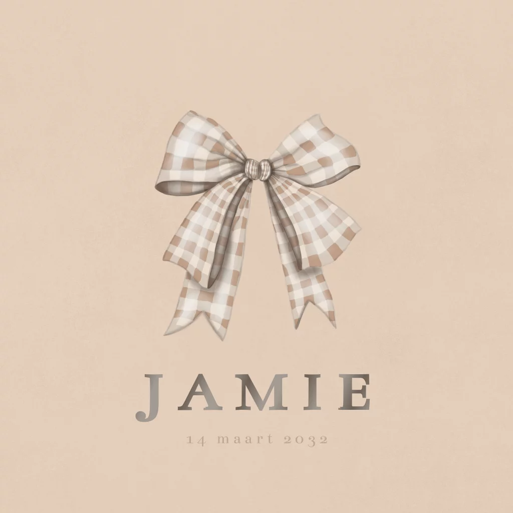 Geboortekaartje neutraal geblokt strikje