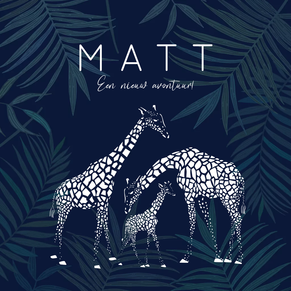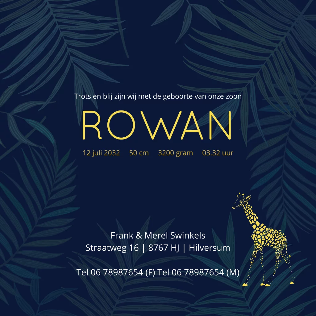 Geboortekaart jongen girafjes in goudfolie met mooie donkere takjes op de achtergrond.
