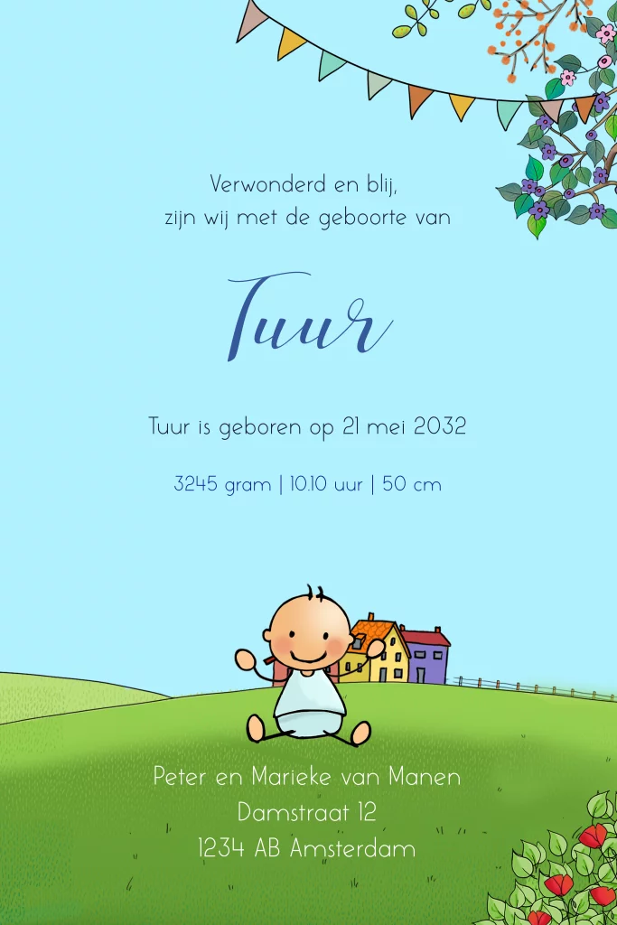 Geboortekaartje baby jongen voorkant busje aqua