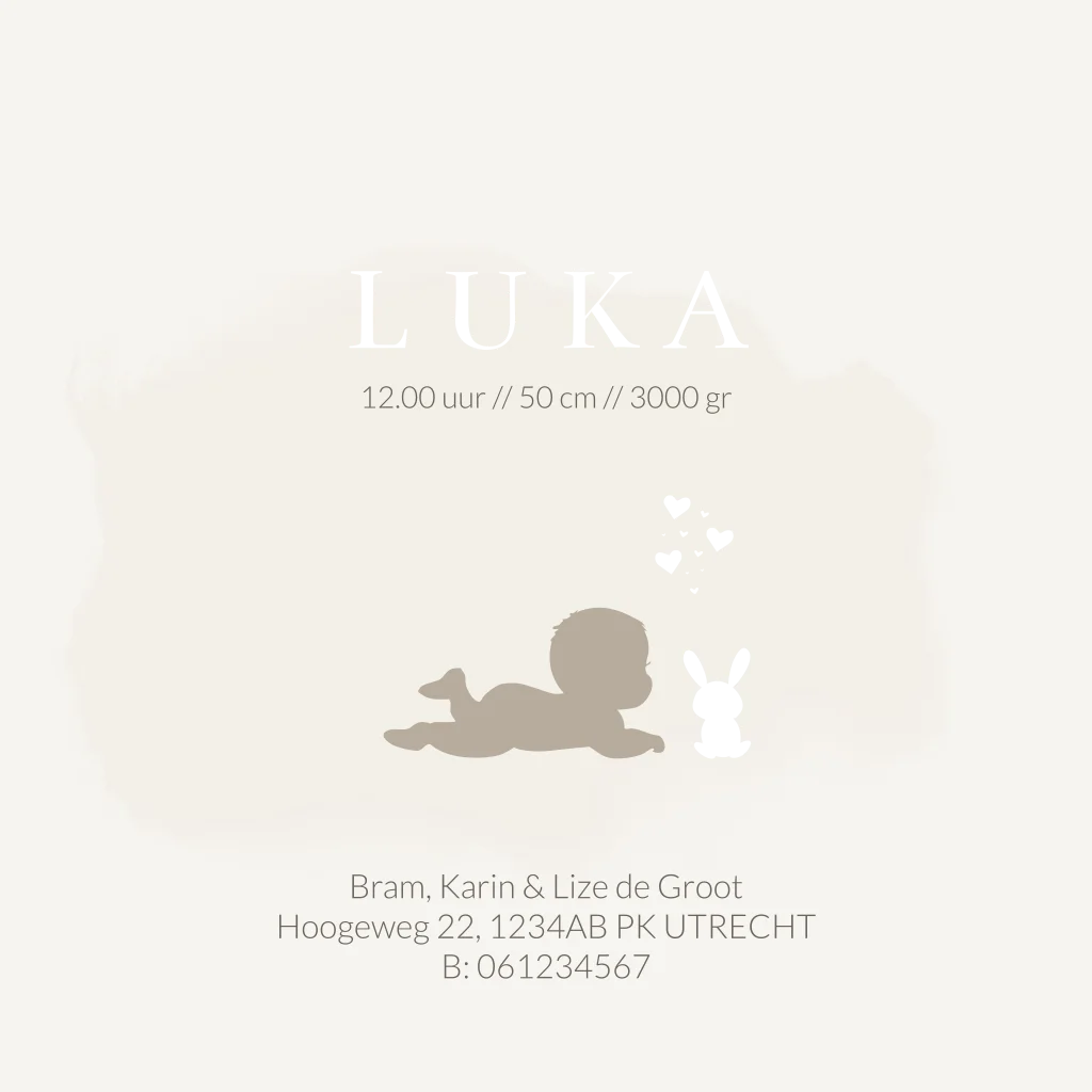 Geboortekaartje beige wiegje met baby jongen en zusje. Super lief kaartje in zachte tinten. In de clipart staan ook broertjes of andere zusjes zodat je de kaart zelf kunt samenstellen.