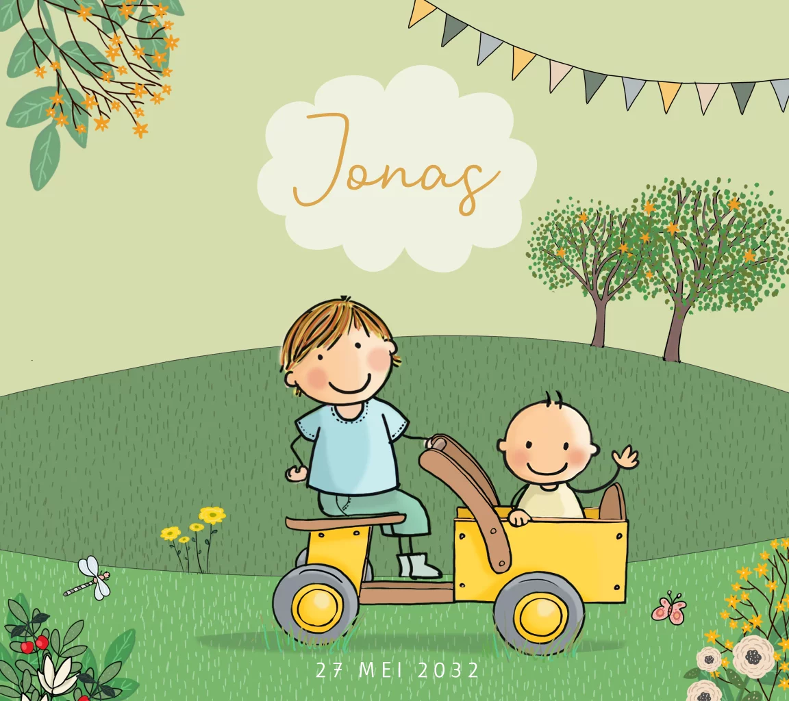 geboortekaartje broertje met baby jongen houtenbakfiets