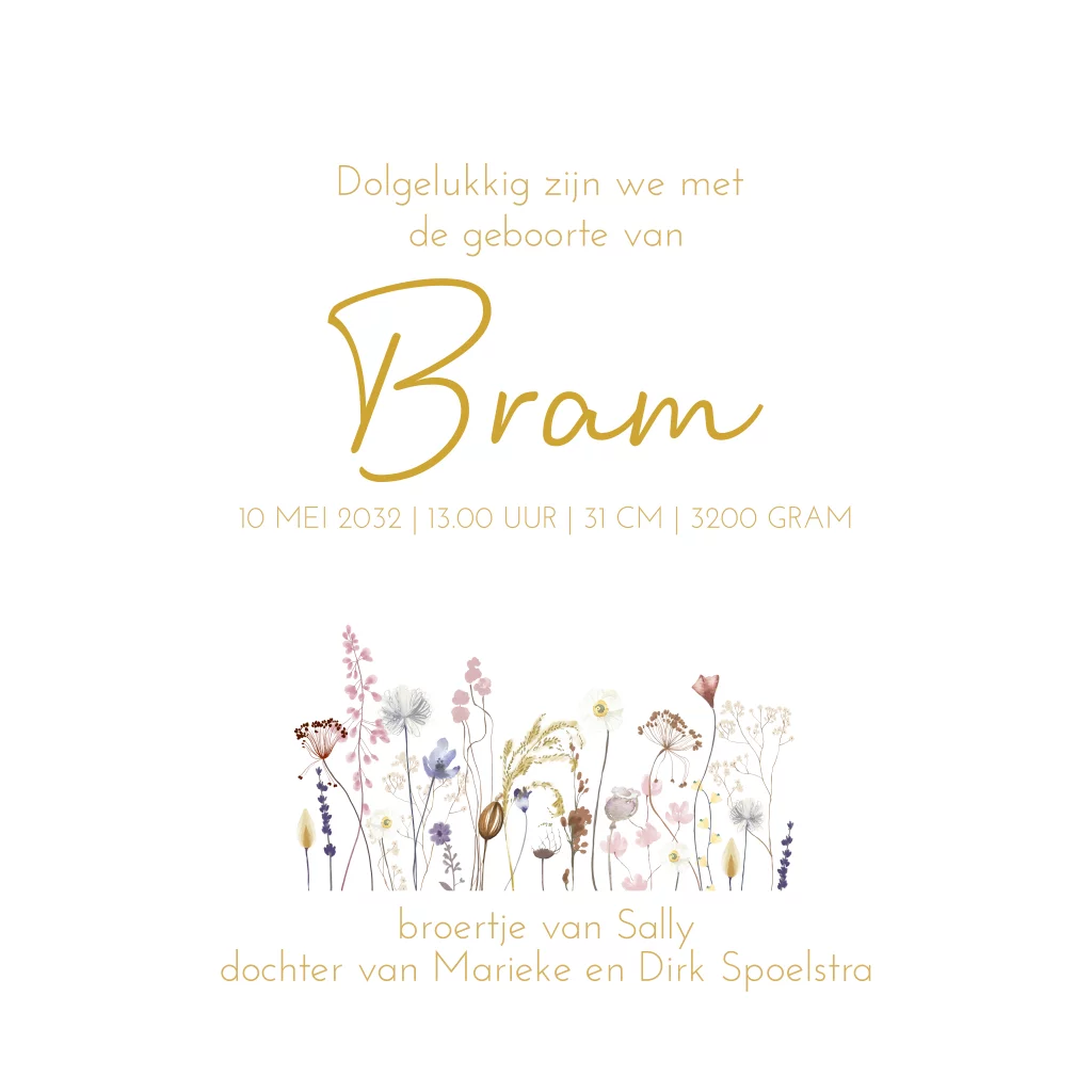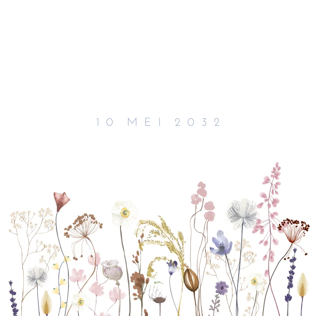 Geboortekaartje droogbloemen blauw met goudfolie en mooie passende achtergrond