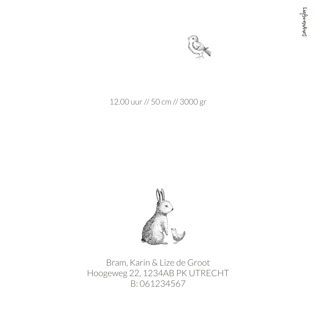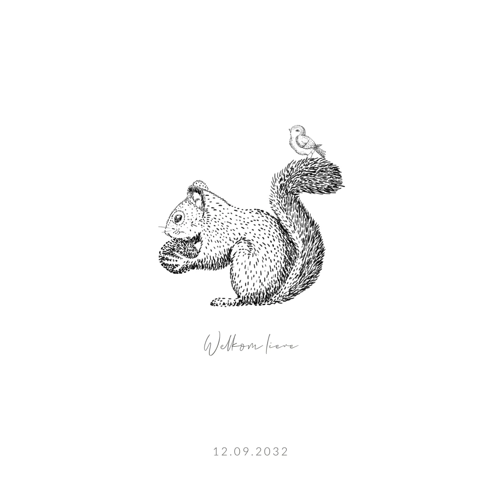 geboortekaartje eekhoorn getekend dubbel foliedruk