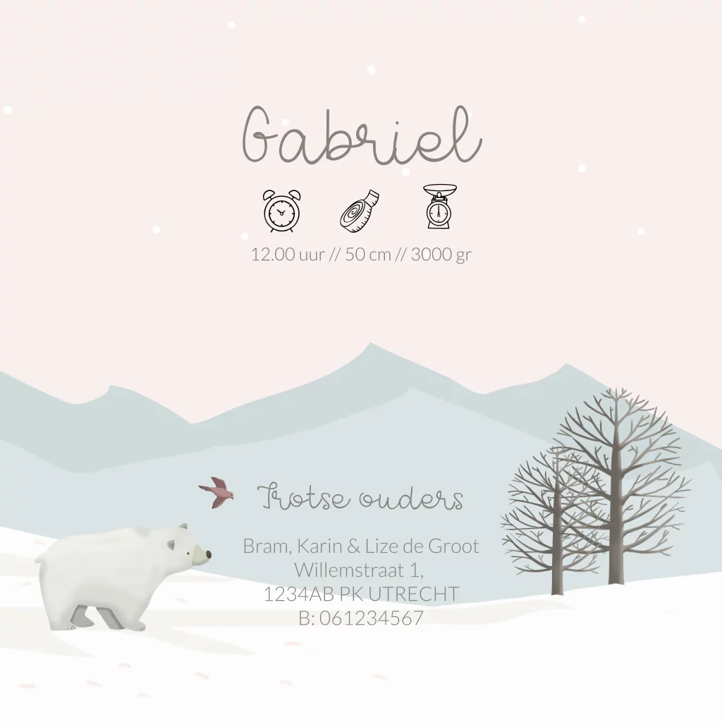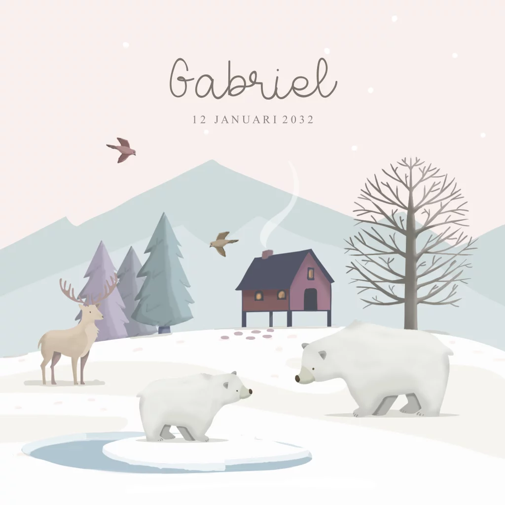 Geboortekaartje ijsbeer met prachtig landschap