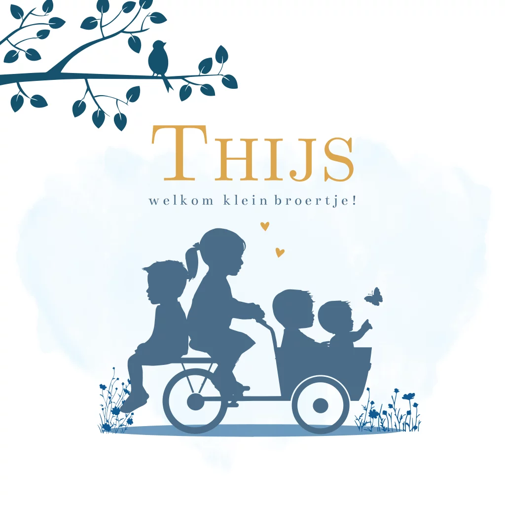 geboortekaartje jongen bakfiets broertjes zusje knuffeltje