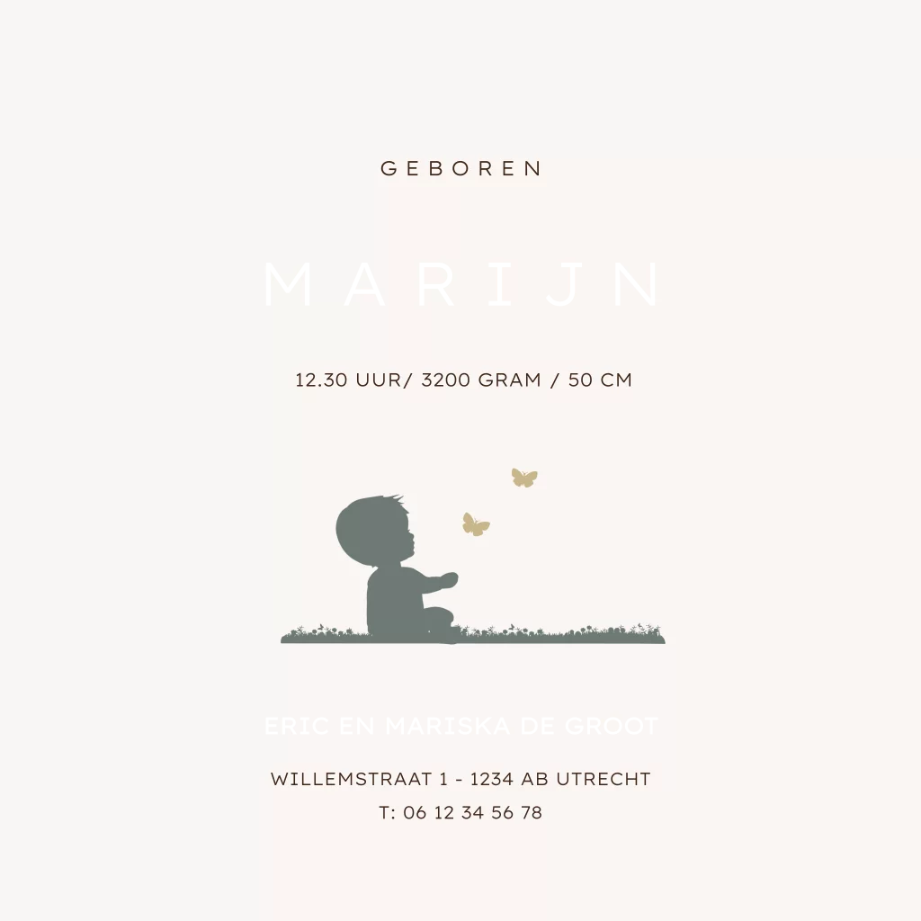 Geboortekaartje jongen bakfietsje met drie kinderen en hond, een geheel naar wens aanpasbaar kaartje met hondje en gras.