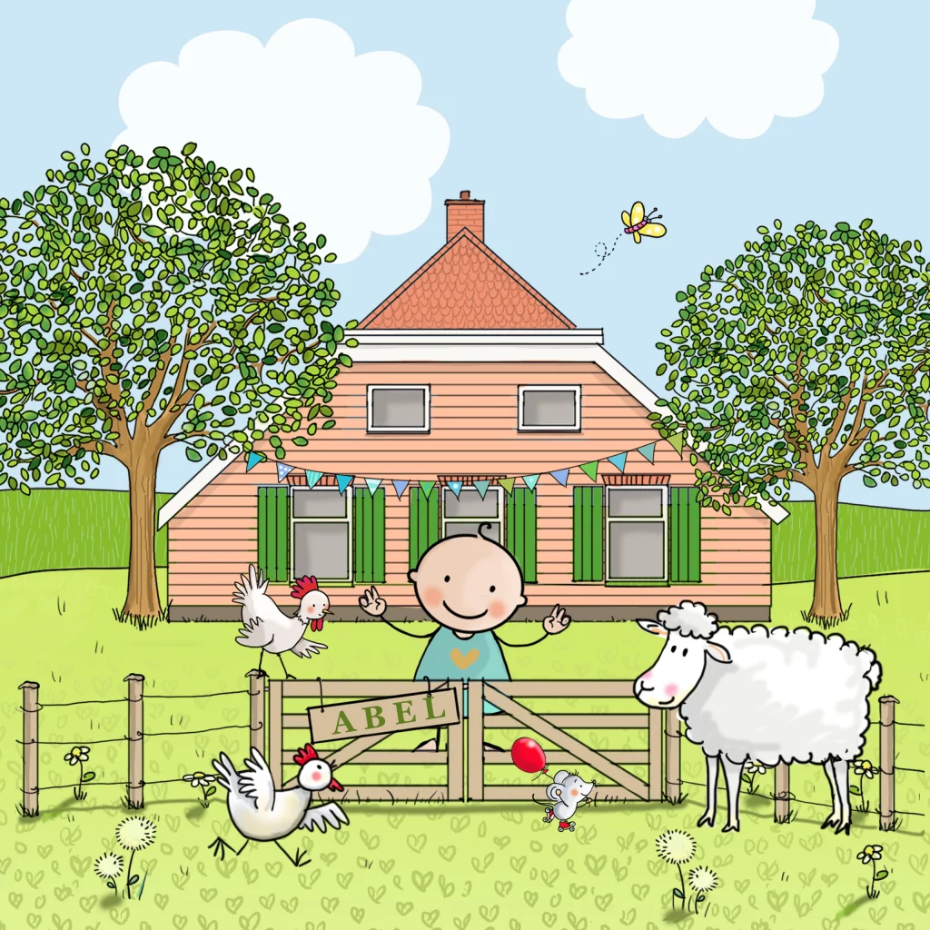 Geboortekaartje jongen boerderij schaap kippen