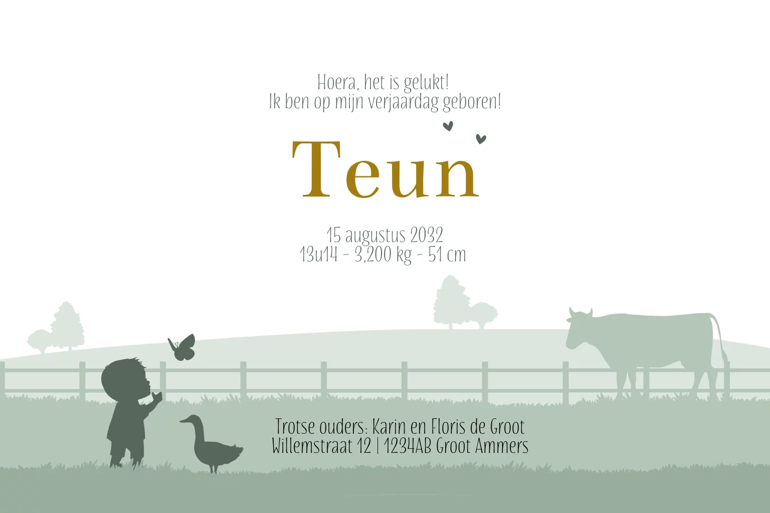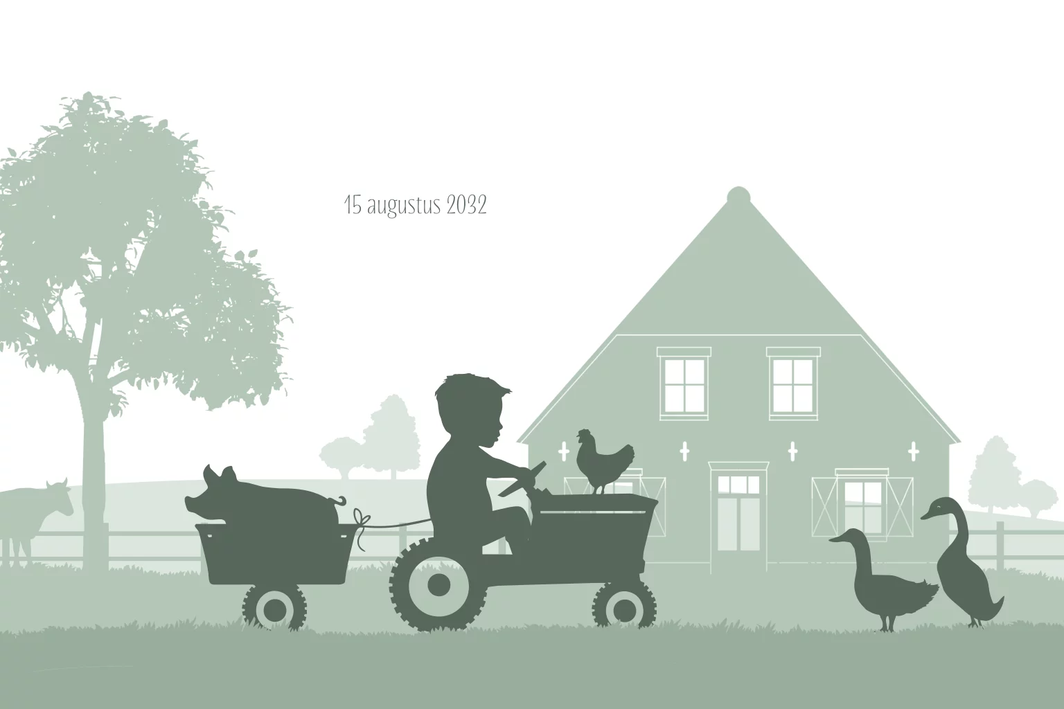 geboortekaartje jongen boerderij tractor varken