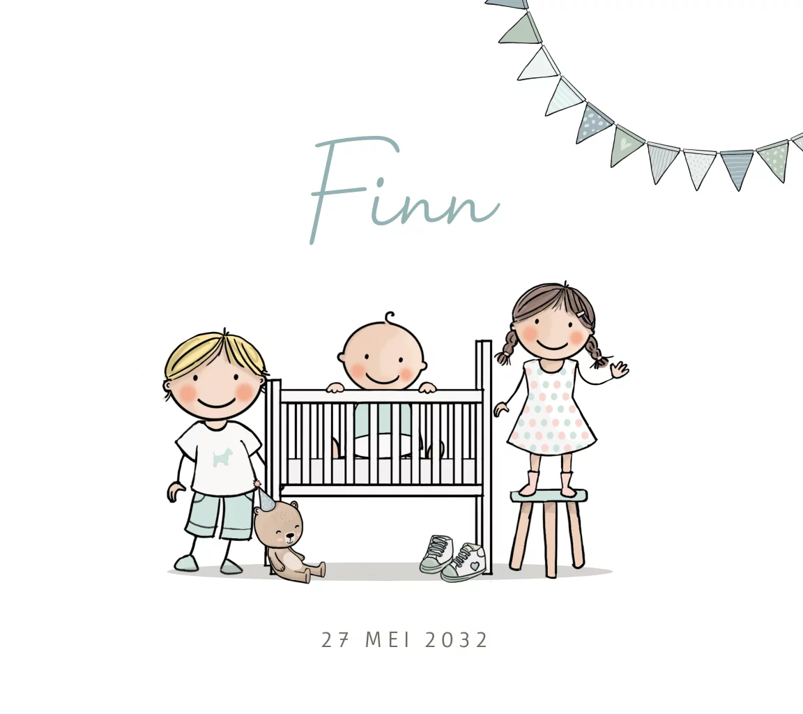 geboortekaartje jongen ledikant broer zus vlaggetjes