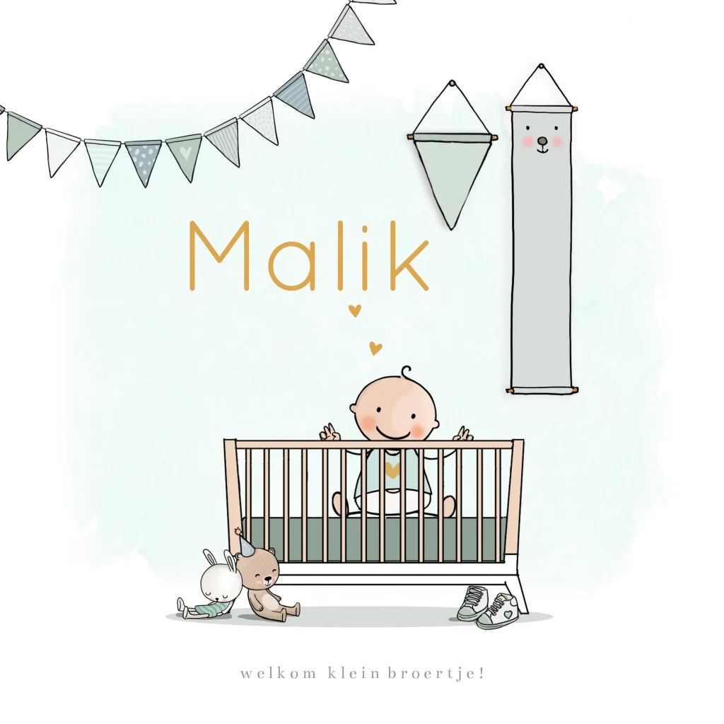 geboortekaartje jongen ledikant vlaggetjes en vaandel