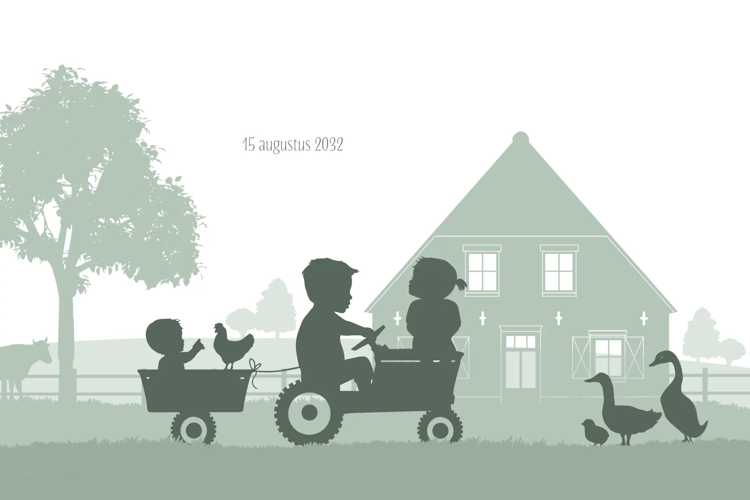 geboortekaartje jongen met broer zusje boerderij tractor varken