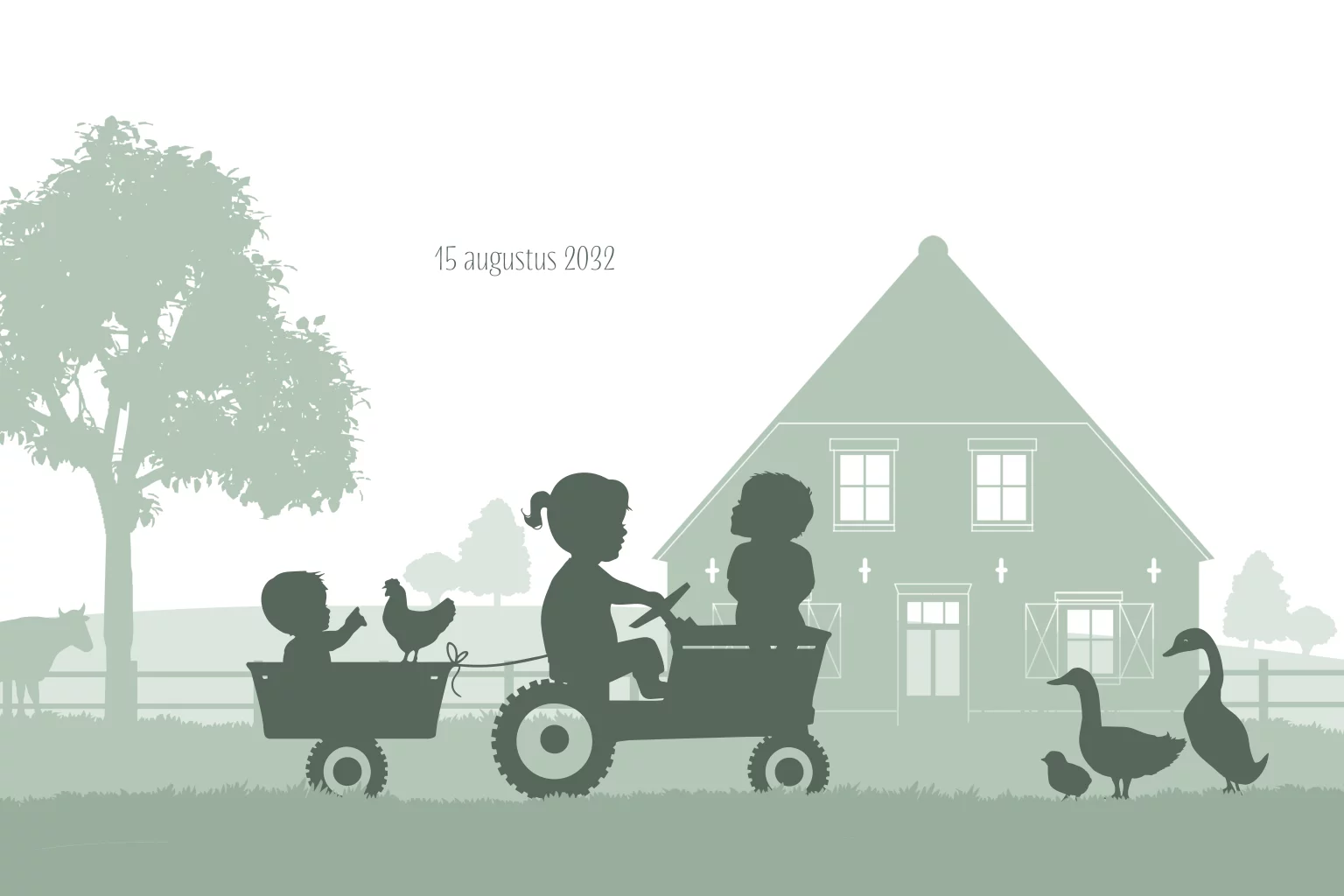 geboortekaartje jongen met broertje zus boerderij tractor varken