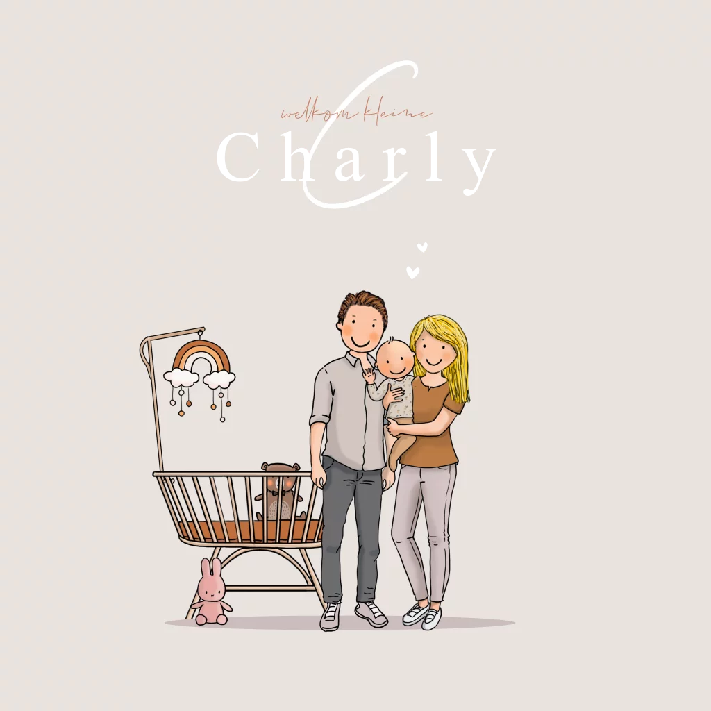 Geboortekaartje jongen met ouders en rotanwieg. Onze geboortekaartjes zijn uniek en naar wens samen te stellen. In de clipart staan diverse illustraties van leuke ouders en kinderen. Zo maak je je eigen ontwerp. Bestel vandaag nog je geboortekaartje en maak je kaartje uniek met onze clipart!