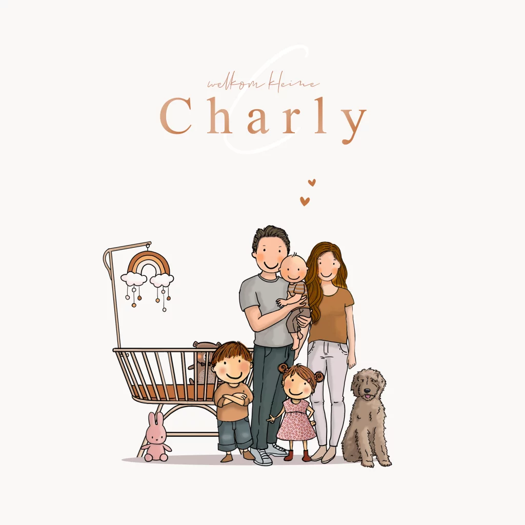 Geboortekaartje jongen met ouders en zusje en broer bij rotanwieg. Onze geboortekaartjes zijn uniek en naar wens samen te stellen. In de clipart staan diverse illustraties van leuke ouders en kinderen. Zo maak je je eigen ontwerp. Bestel vandaag nog je geboortekaartje en maak je kaartje uniek met onze clipart!