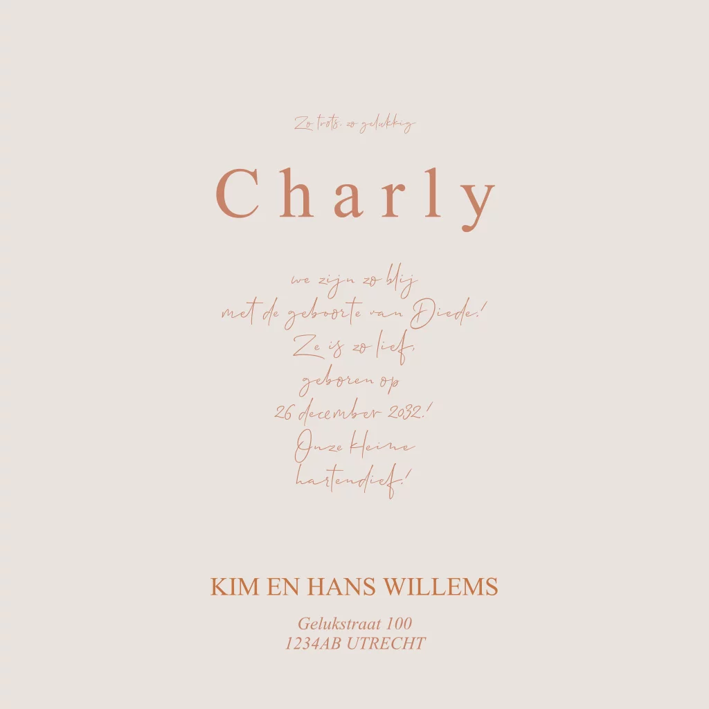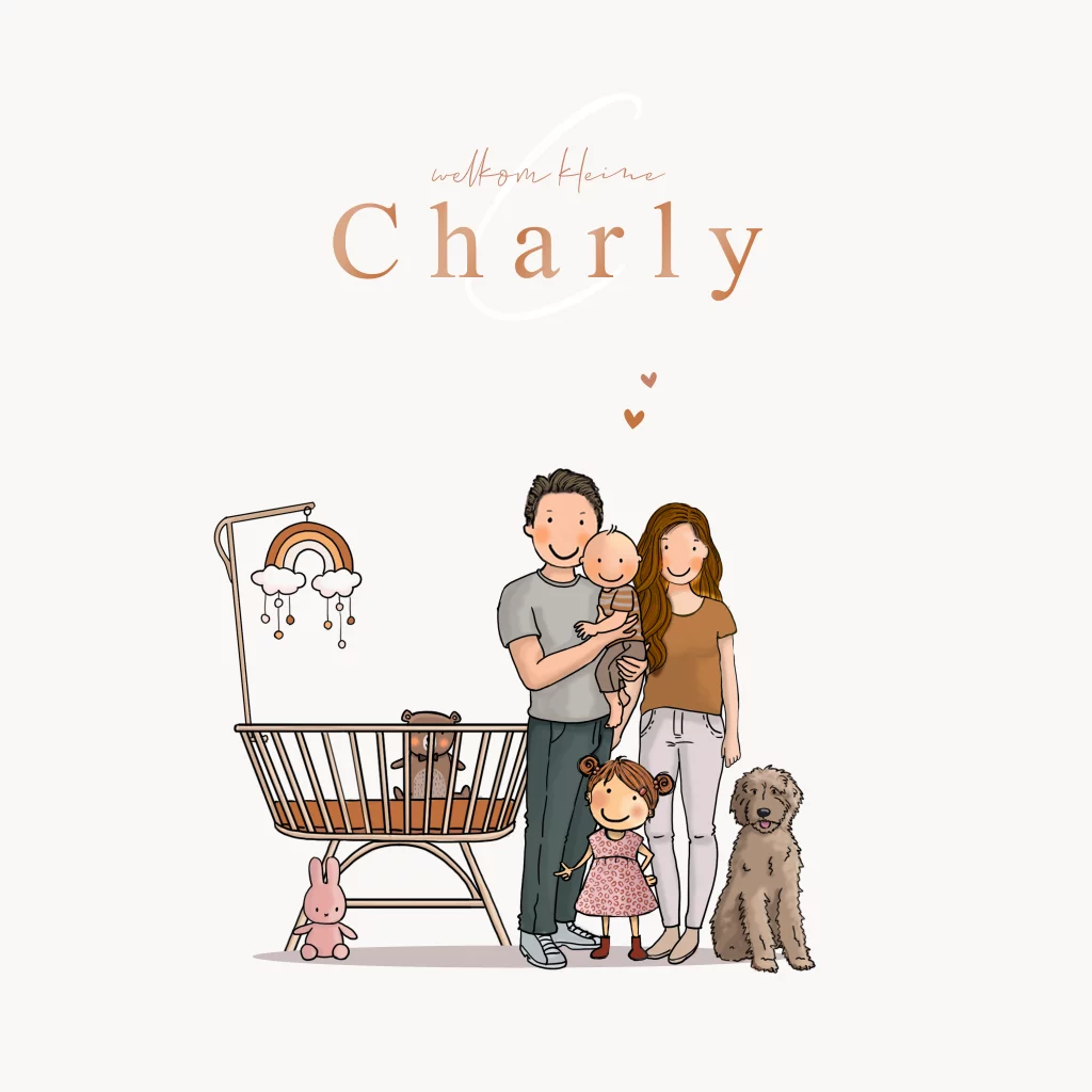 Geboortekaartje jongen met ouders zusje en rotanwieg
