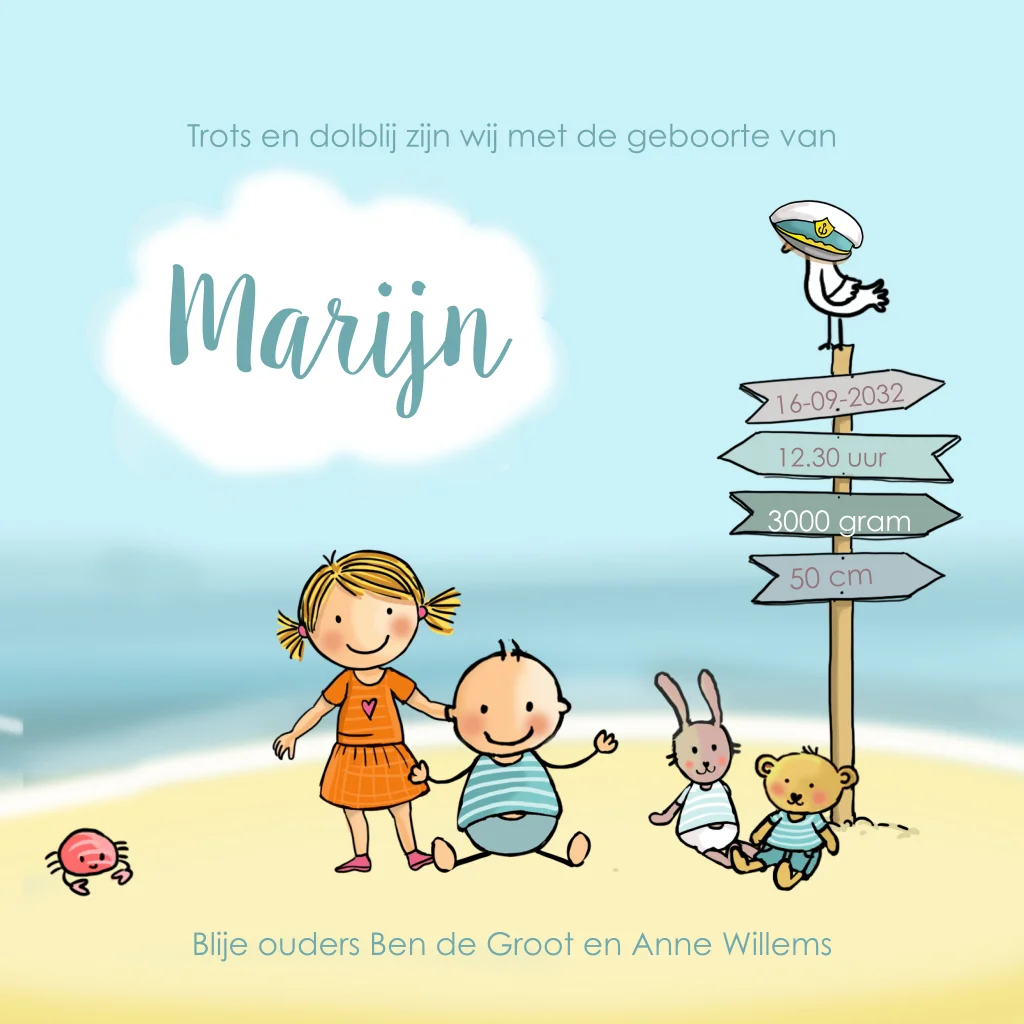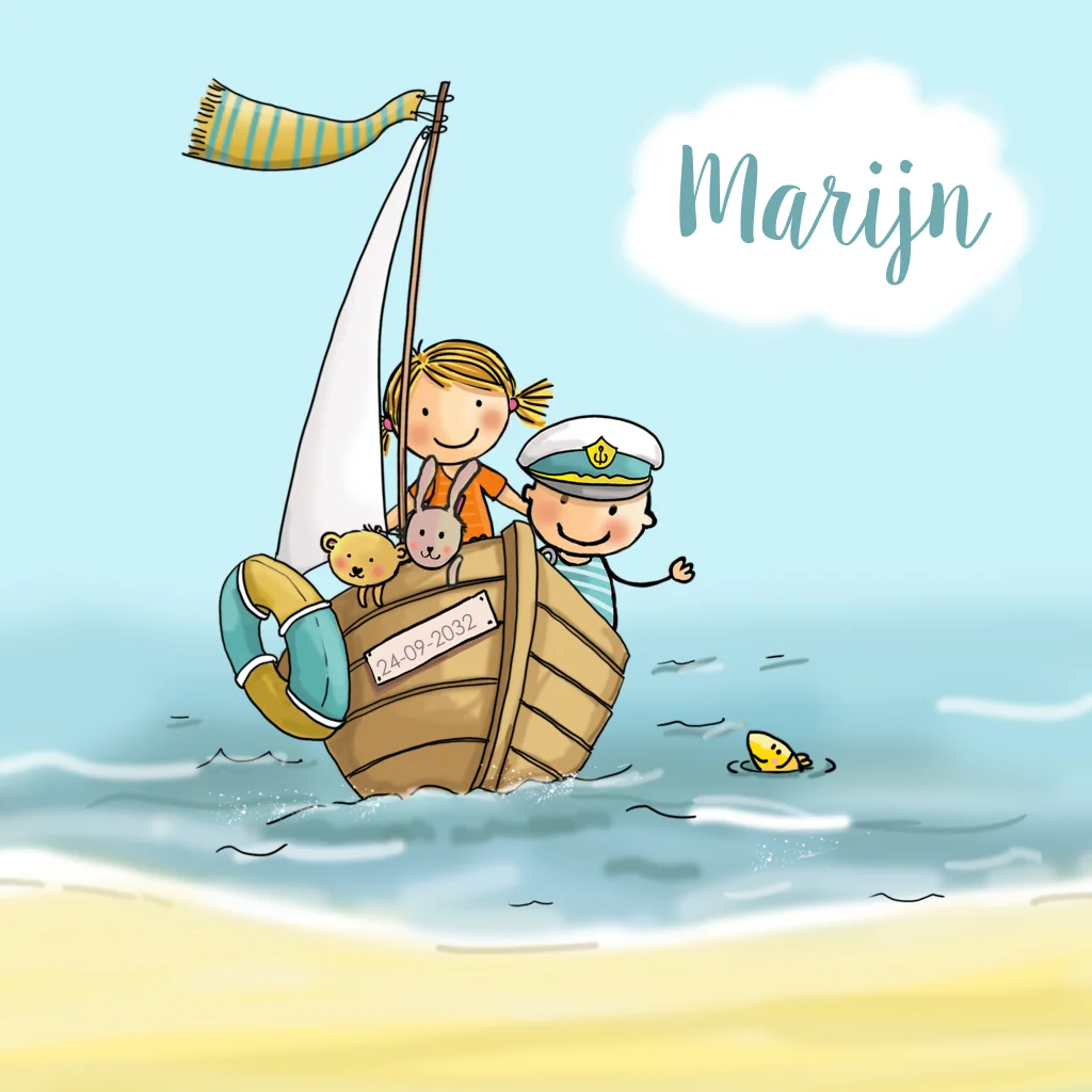 geboortekaartje jongen met zusje bootje met zee