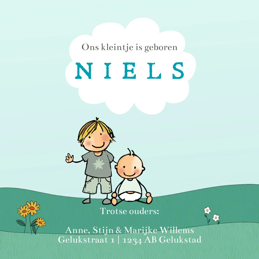 Geboortekaartje jongen rotan wiegje broertje met natuur