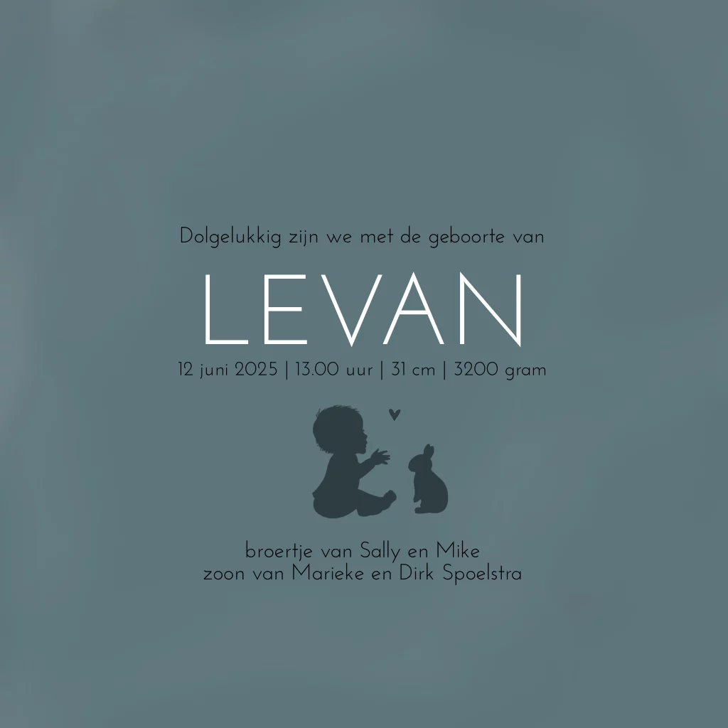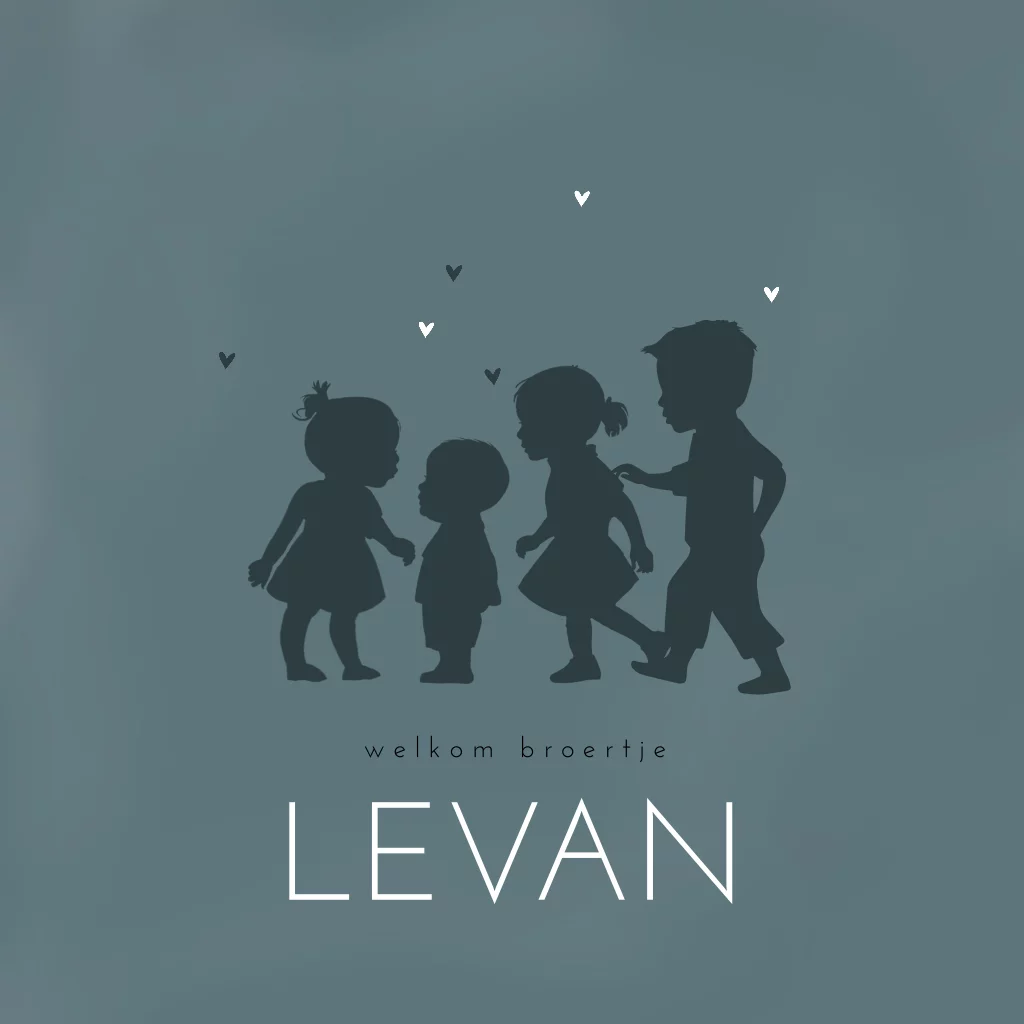 Super lief geboortekaartje van broertje met twee zusjes en broer met hartjes voor een derde kindje