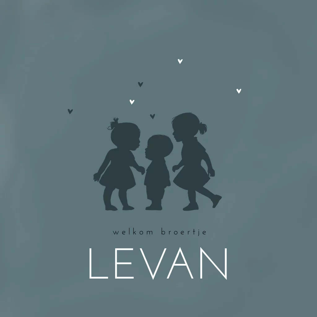 Super lief geboortekaartje van broertje met twee zusjes met hartjes voor een derde kindje