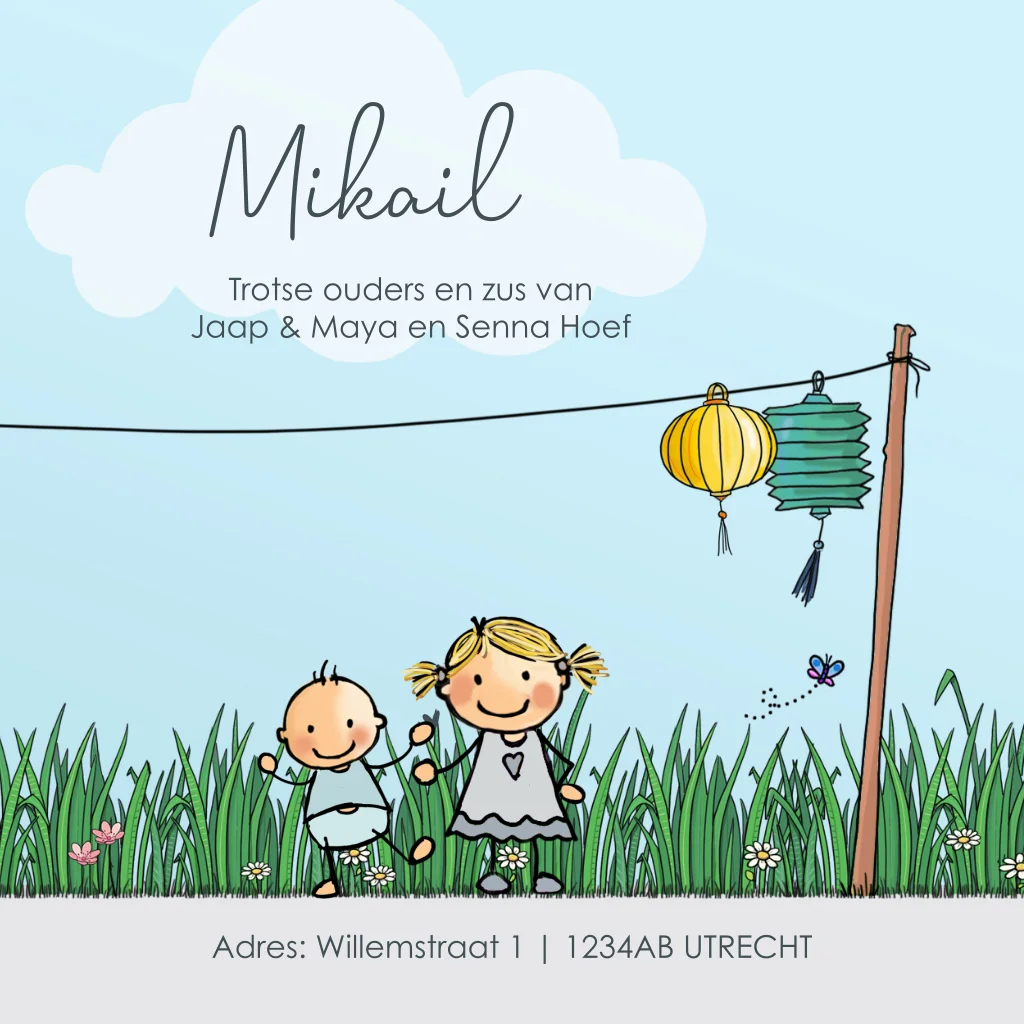 Geboortekaartje jongen volkswagen t2 geel met zusje. In de clipart staan vele leuke ouders die je kunt uitzoeken. Teksten zijn ook naar wens aanpasbaar.
