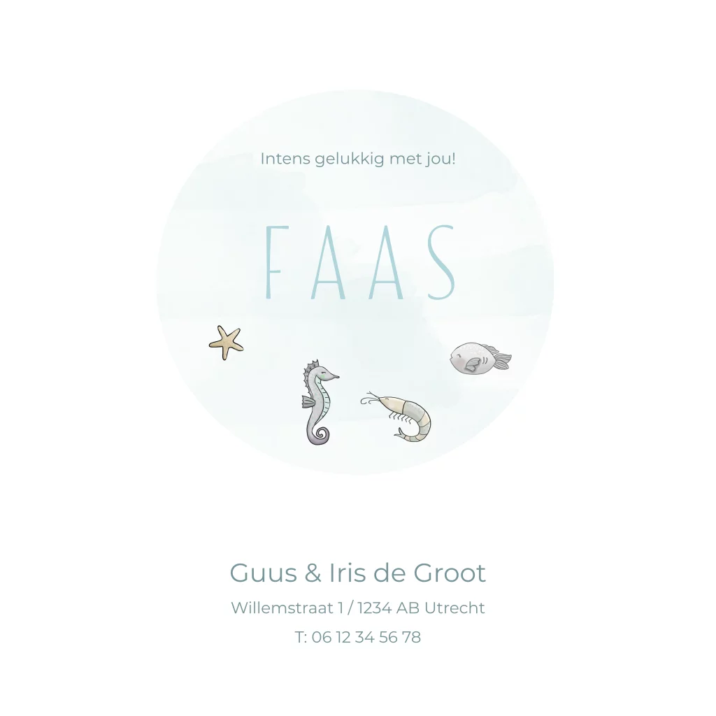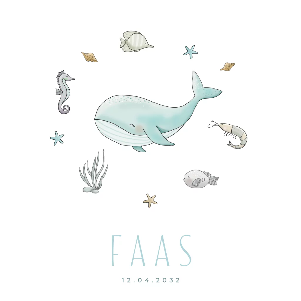 Geboortekaartje jongen walvis met zeedieren