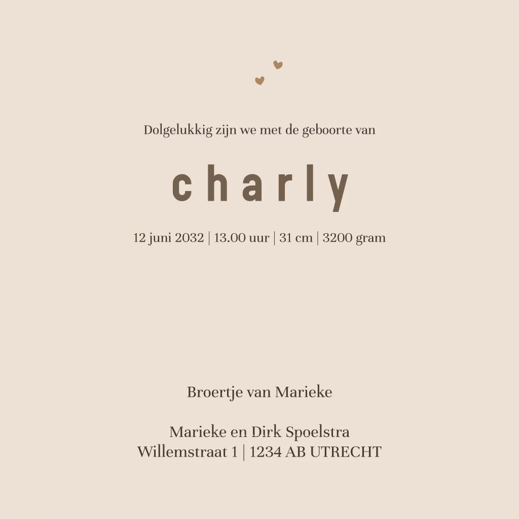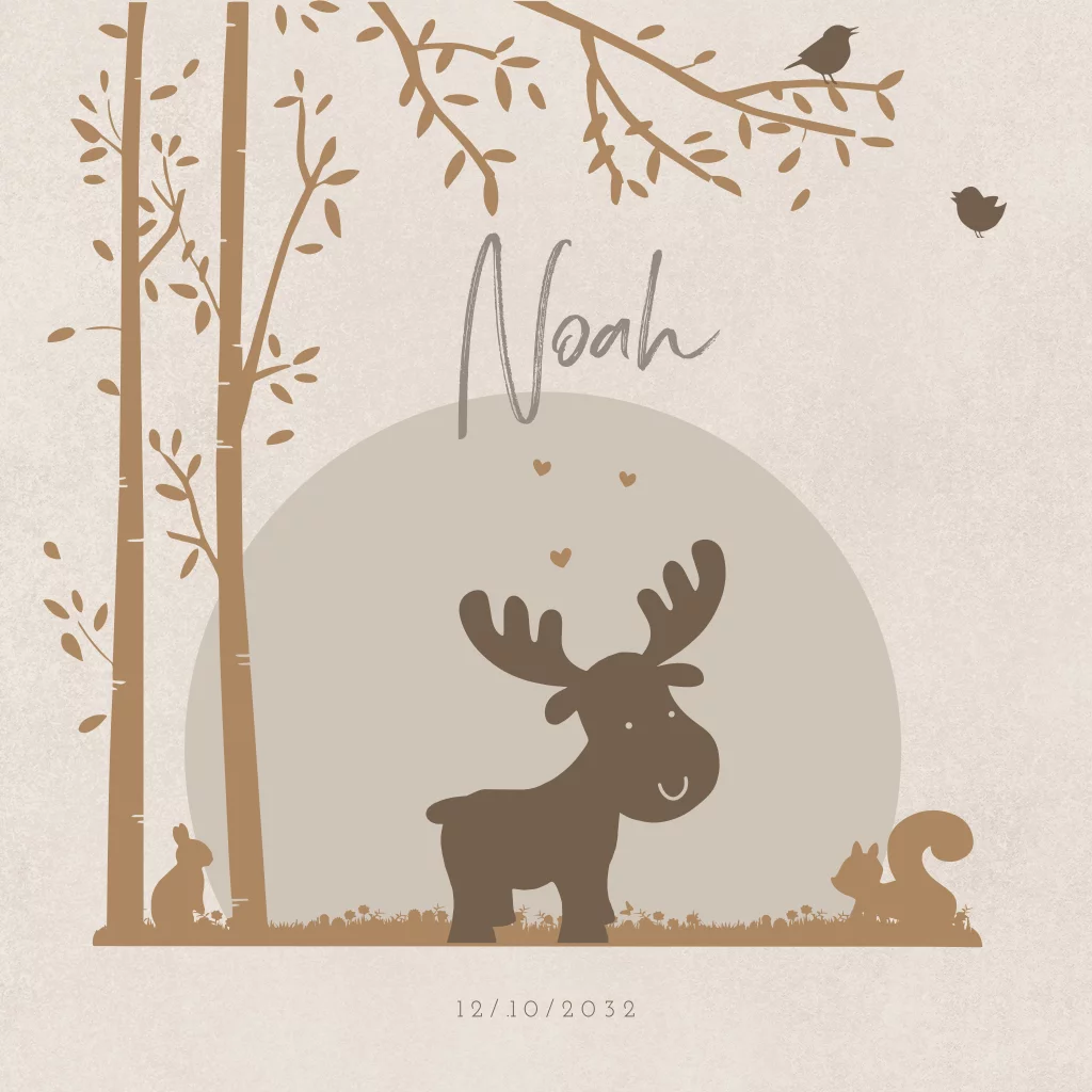 Geboortekaartje kleine eland met bosdieren. De achtergrond kleur is naar wens aanpasbaar. Mooie doorlopende binnenkant met dieren die in het busje zitten. Volkswagenbusjes zijn al lang een geliefd motief op geboortekaartjes. Dit busje met schattige dieren is een schitterend voorbeeld van een origineel en leuk geboortekaartje. Het design is uniek en de kleur oranje maakt het busje echt opvallen. Het geboortekaartje is ook voorzien van een koperfolie accent, wat het geheel een luxe uitstraling geeft.