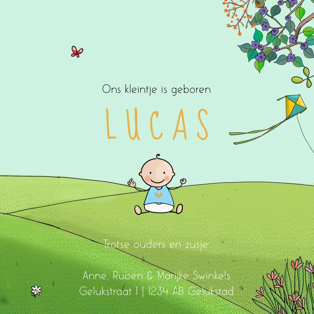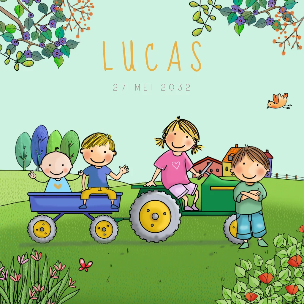 Geboortekaartje tractor groen met aanhangwagen zus broertjes, de afbeeldingen zijn los, dus je kunt naar wens alles aanpassen.