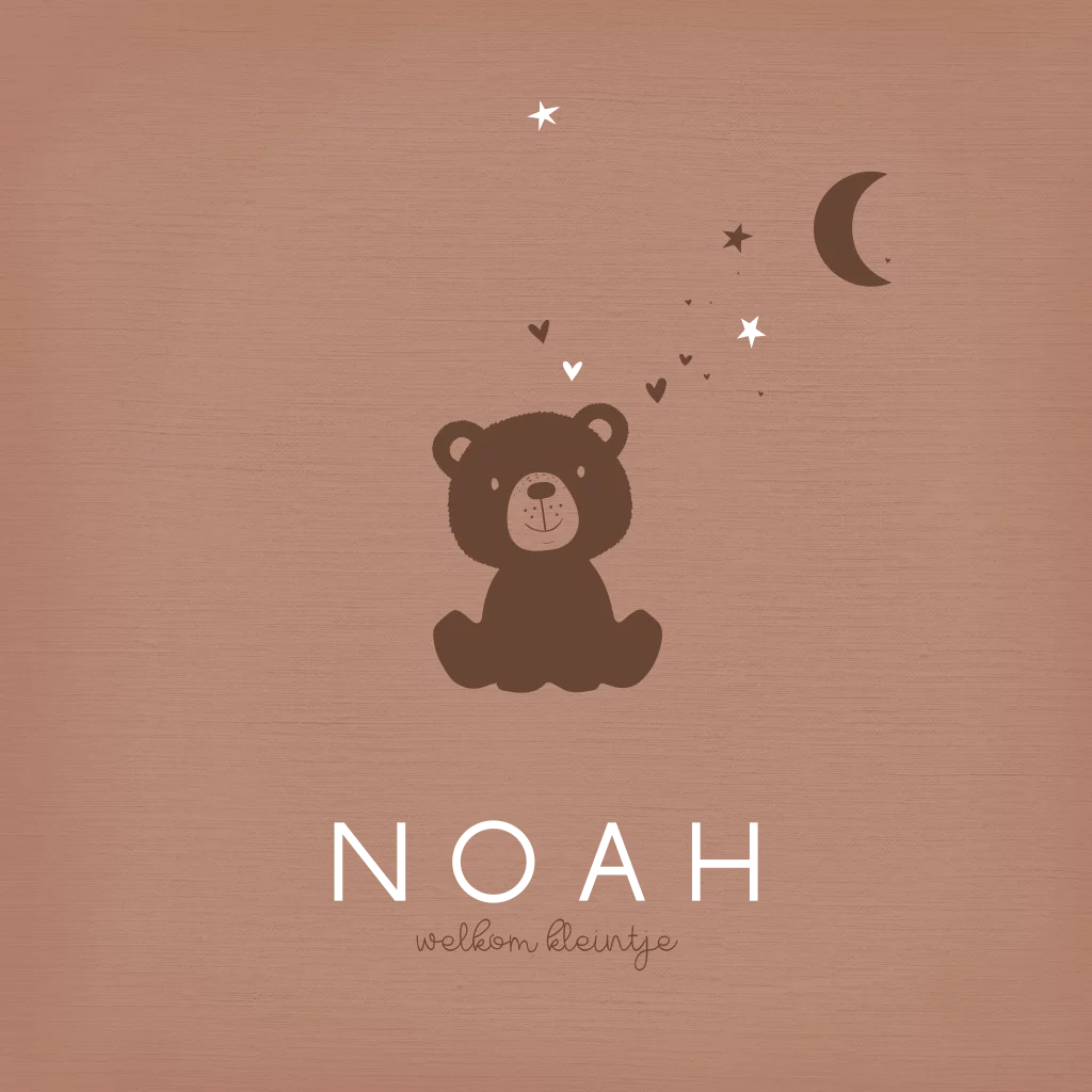 Op zoek naar een uniek geboortekaartje? Bekijk dan eens dit warme bruine beertje met maantje! Dit stoere kaartje is perfect voor een avontuurlijke jongen. Het luxe design maakt het extra bijzonder.