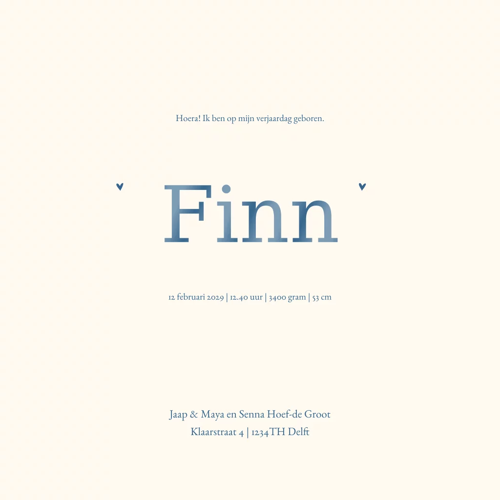 Lief geboortekaartje met blauw bootje, personaliseer eenvoudig in onze editor.