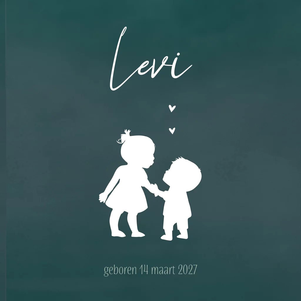 Geboortekaartje zusje met baby jongen kusje en hartjes met prachtige warm donker groene achtergrond
