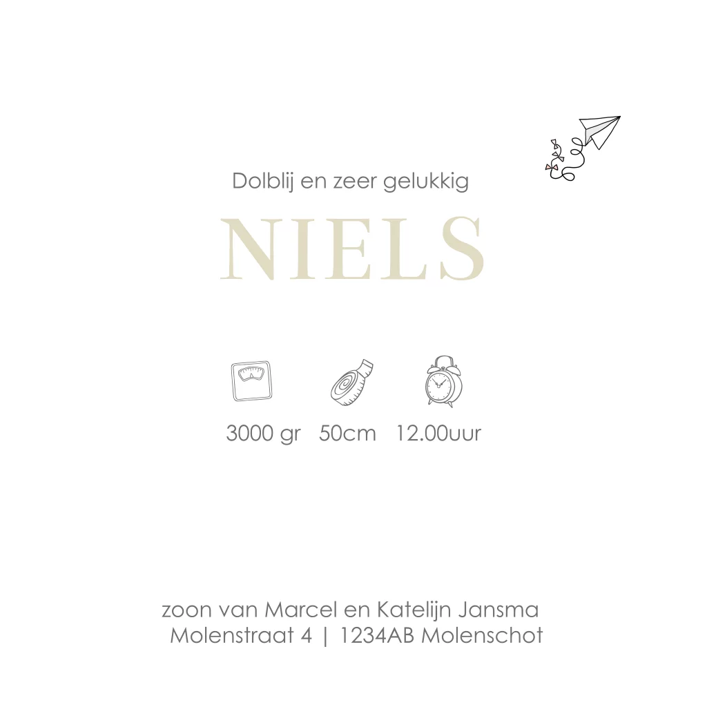 Geboortekaartje met baby jongen en lopende ouders. Een nieuwe reis, een nieuw avontuur. Een prachtig getekende illustratie voor een geboorte.