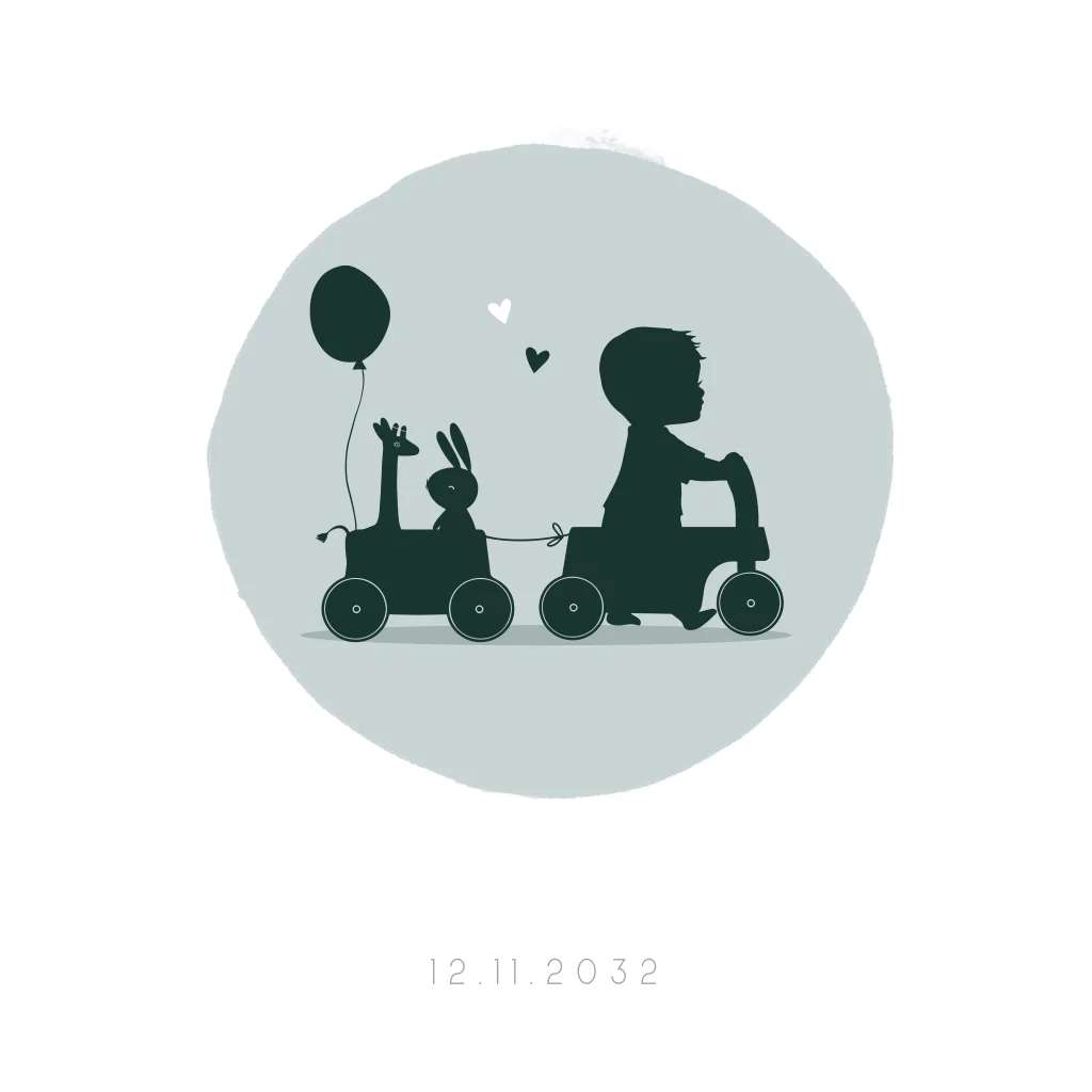 geboortekaartjes silhouette baby jongetje loopkar aanhanger grijs