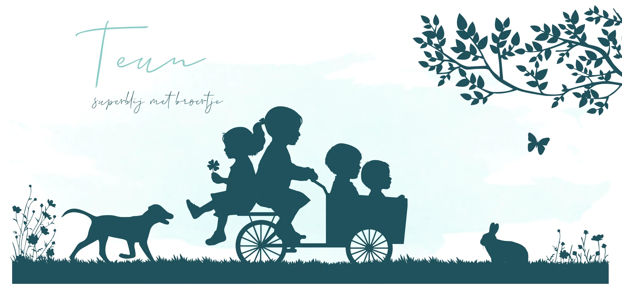 geboortekaartjes silhouette bakfiets met kinderen en tak