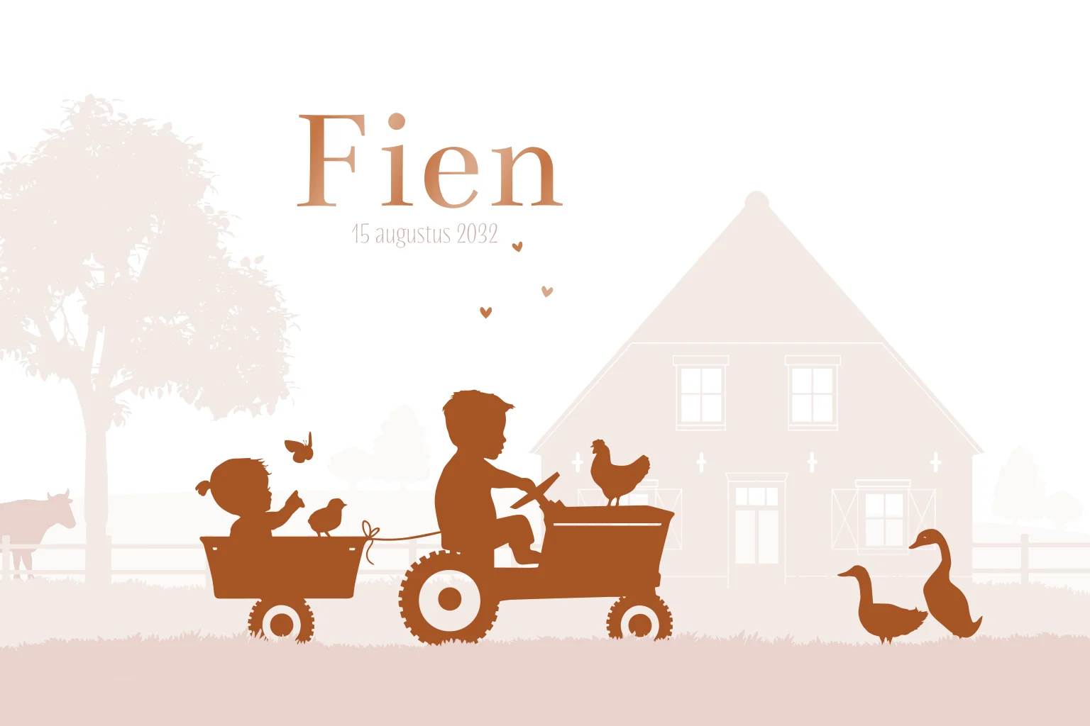 Geboortekaartje meisje met broertje boerderij tractor varken