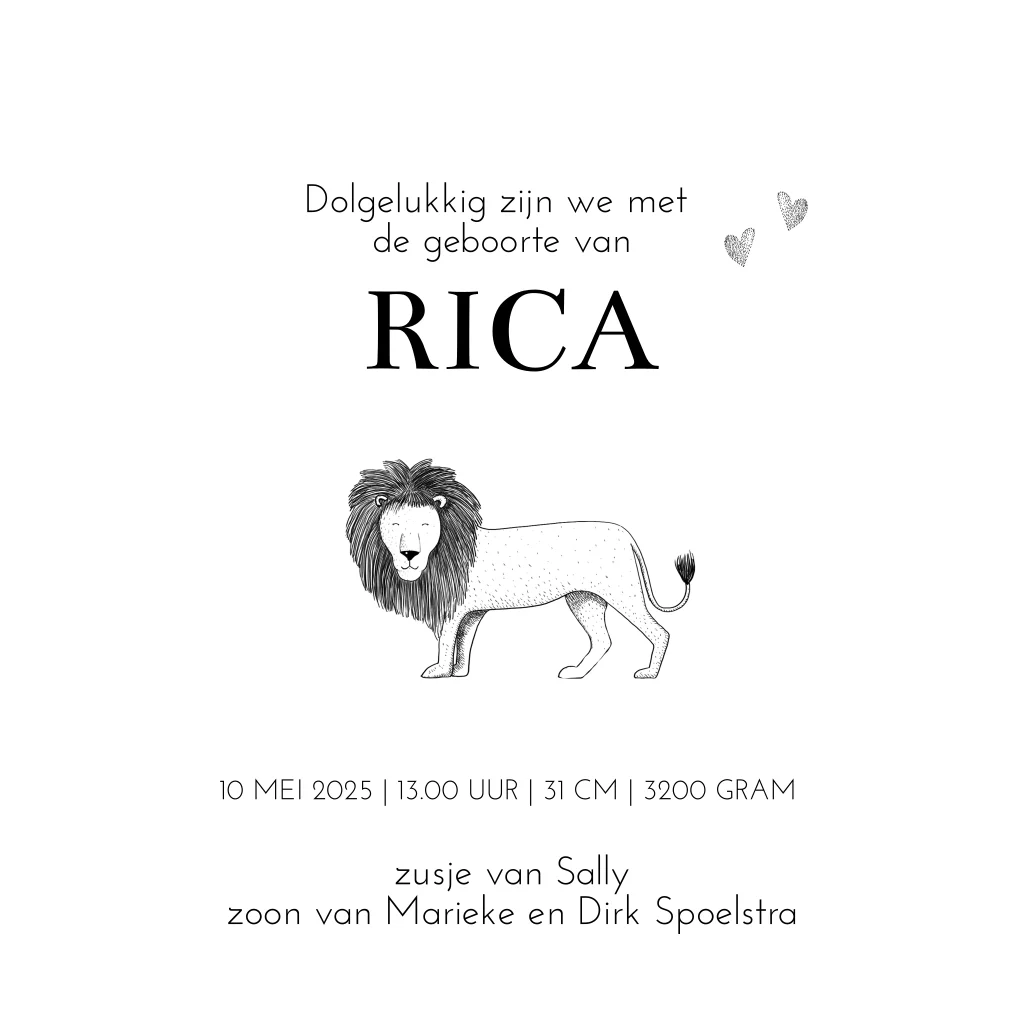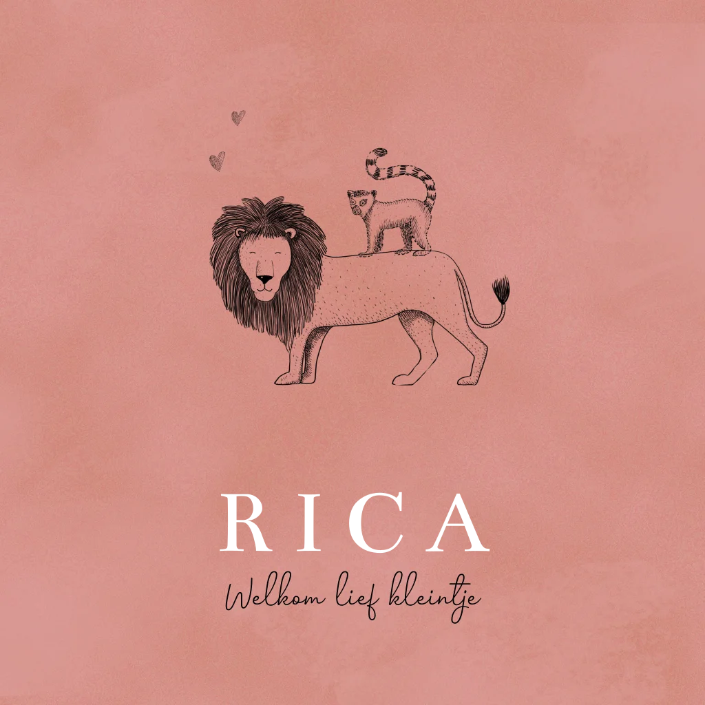 Prachtig getekende leeuw met klein aapje op de rug, mooie terra cotta achtergrond. Deze kun je aanpassen naar wens.