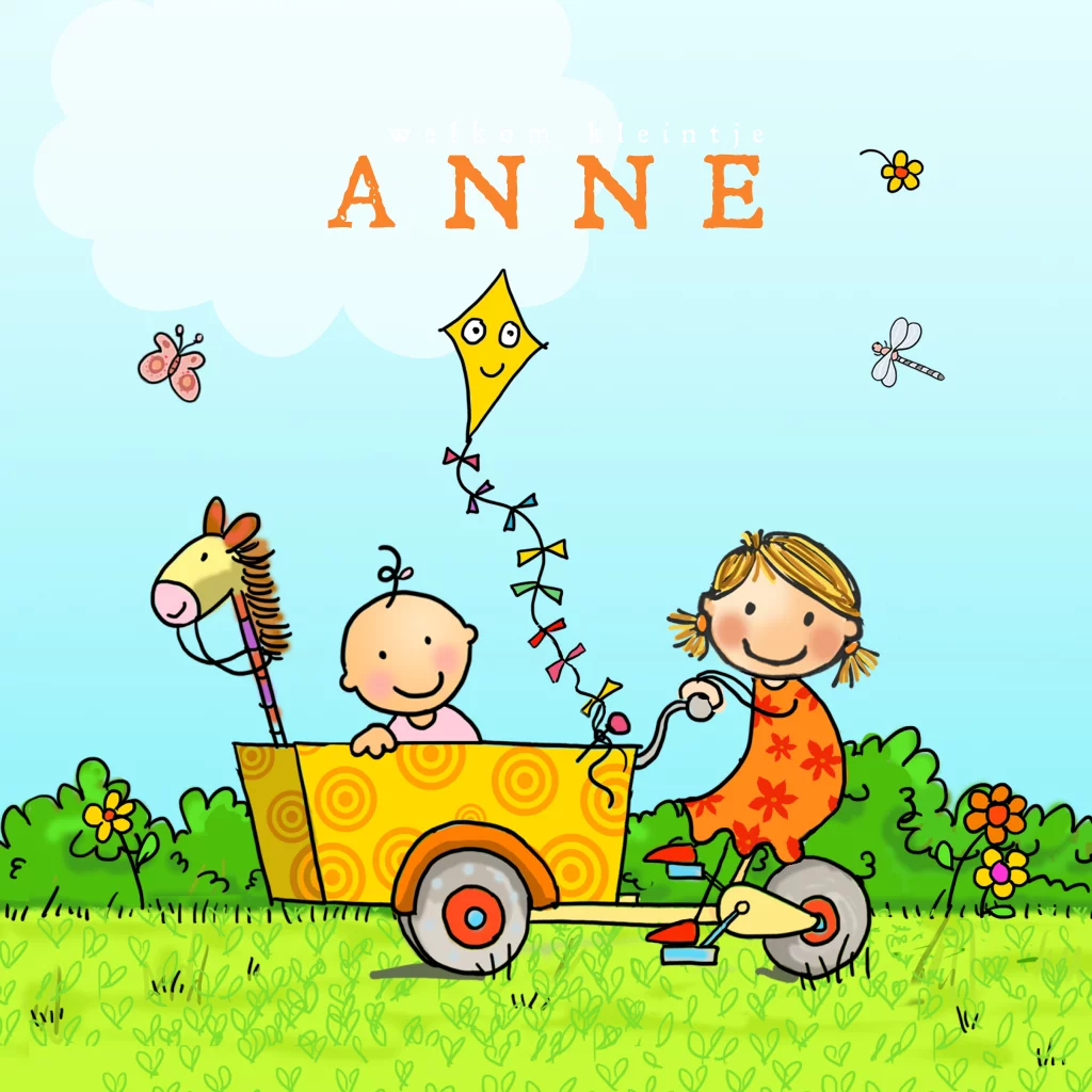 Geboortekaartje meisje bakfietsje met zusje kleurrijk
