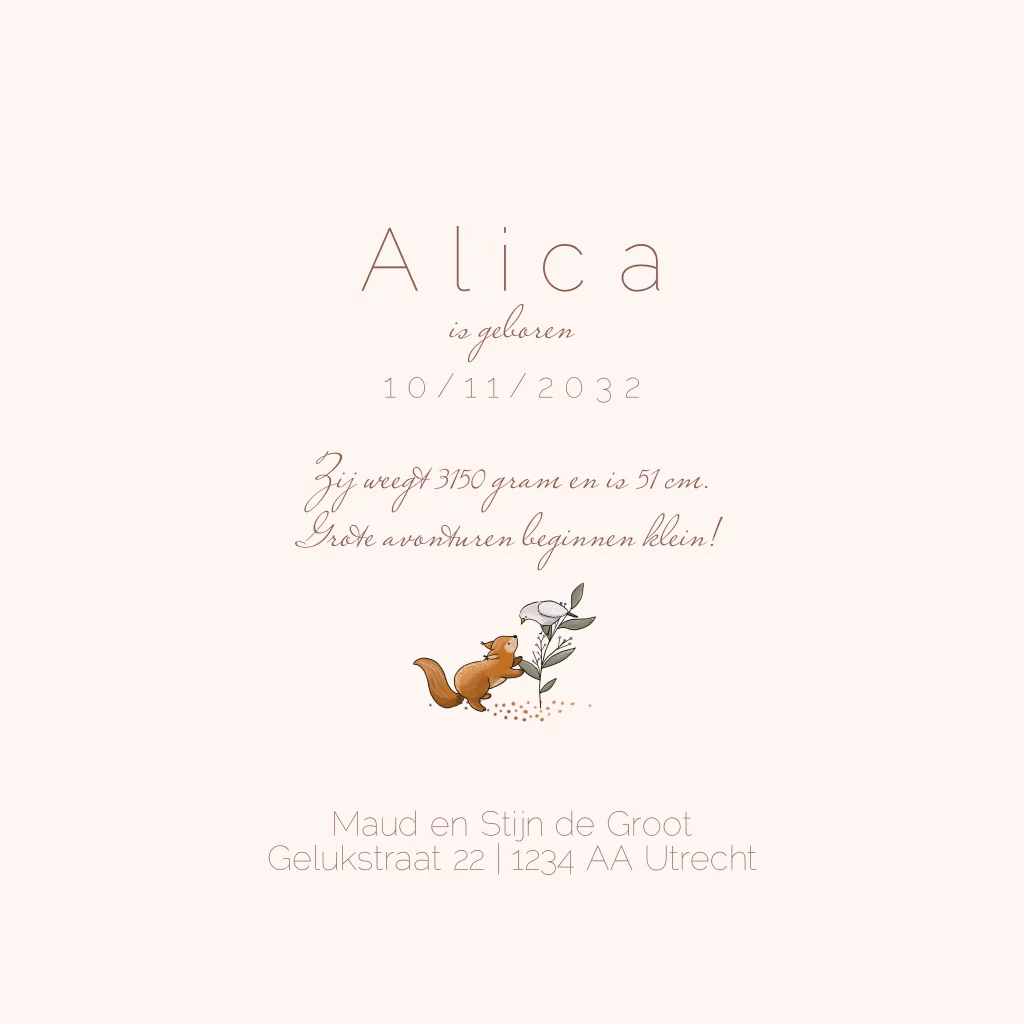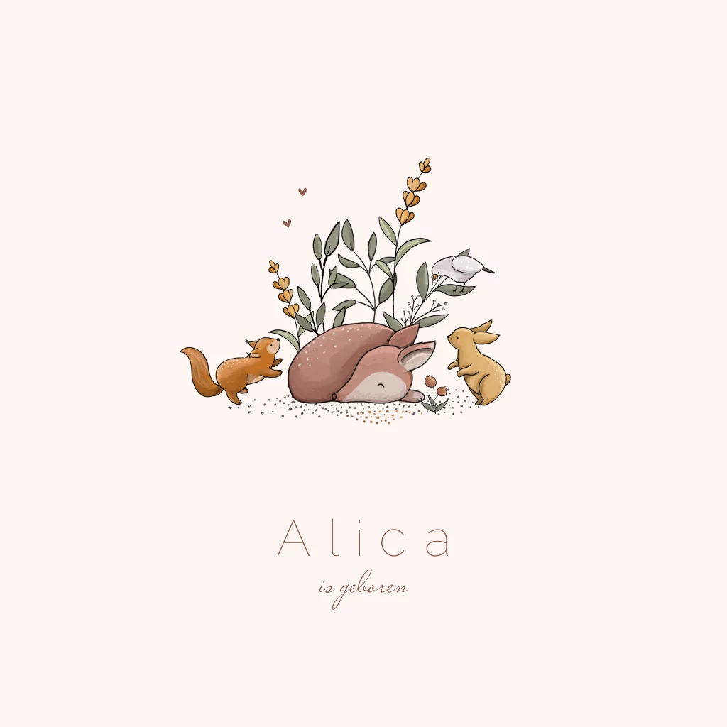 Geboortekaartje meisje bosdieren ree eekhoorn konijn