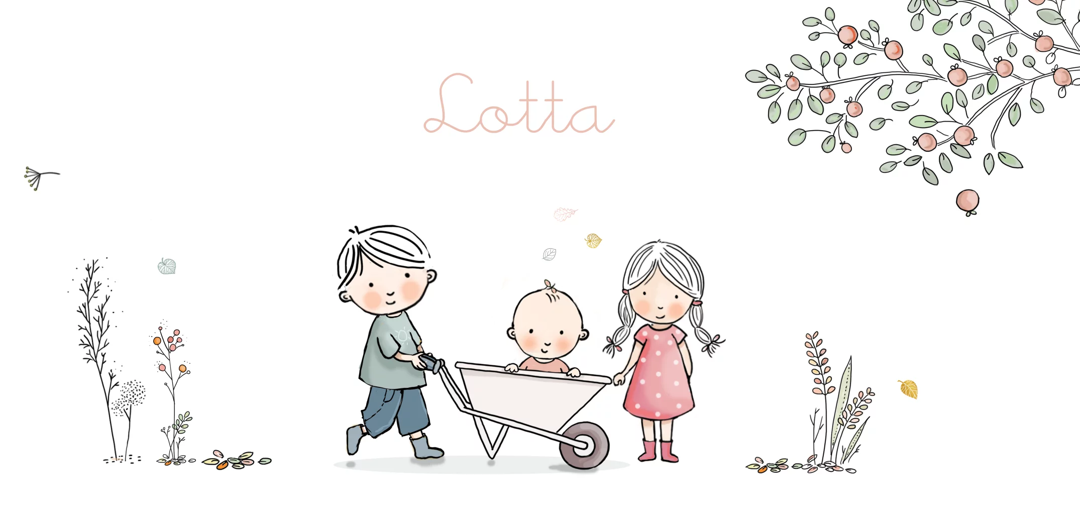 Geboortekaartje meisje met broertje en zusje met kruiwagen herfst. Alle illustraties zijn los dus je kunt ze naar wens verplaatsen of veranderen.