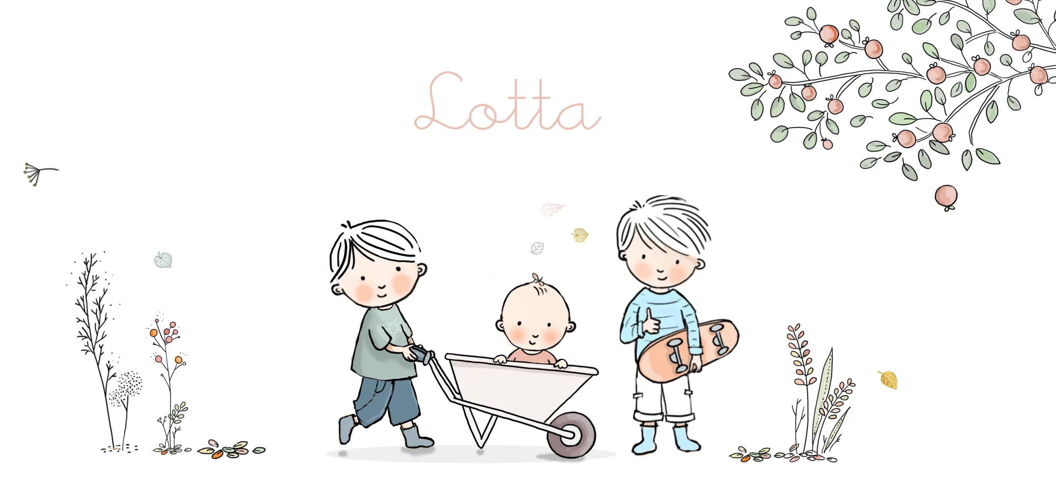 Geboortekaartje meisje met broertjes met kruiwagen herfst. Alle illustraties zijn los dus je kunt ze naar wens verplaatsen of veranderen.