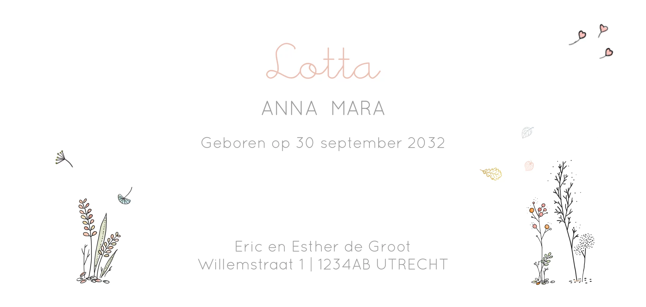 Geboortekaartje meisje broertjes met kruiwagen herfst