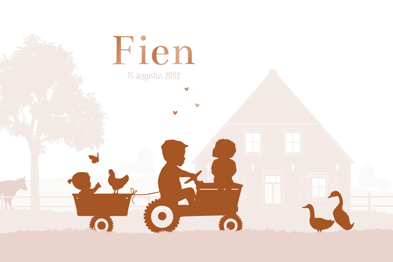 geboortekaartje meisje en broertjes boerderij tractor varken