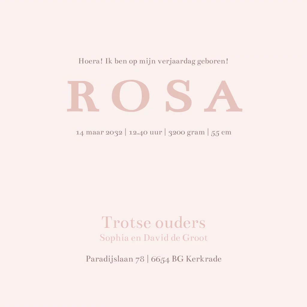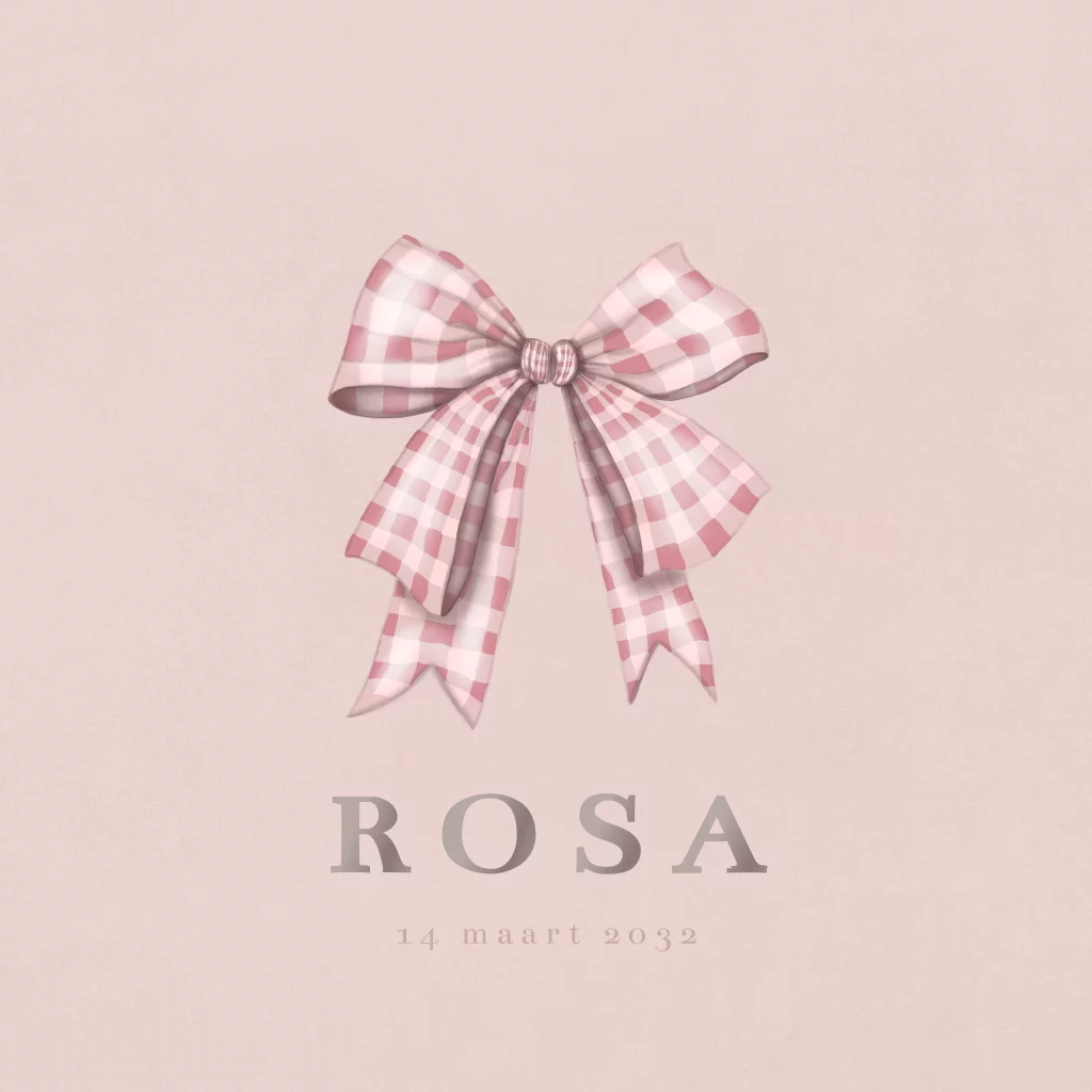 Geboortekaartje meisje geblokt strikje lichtroze