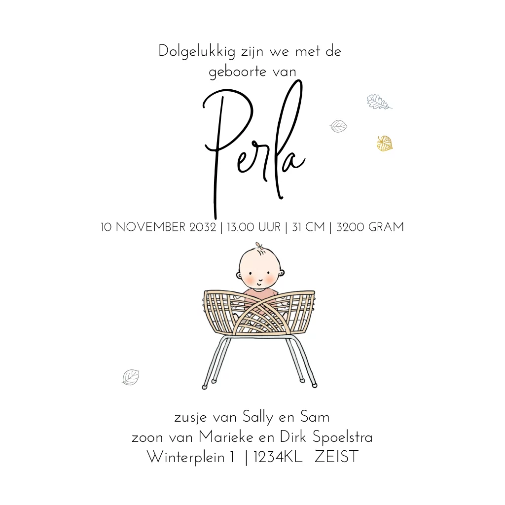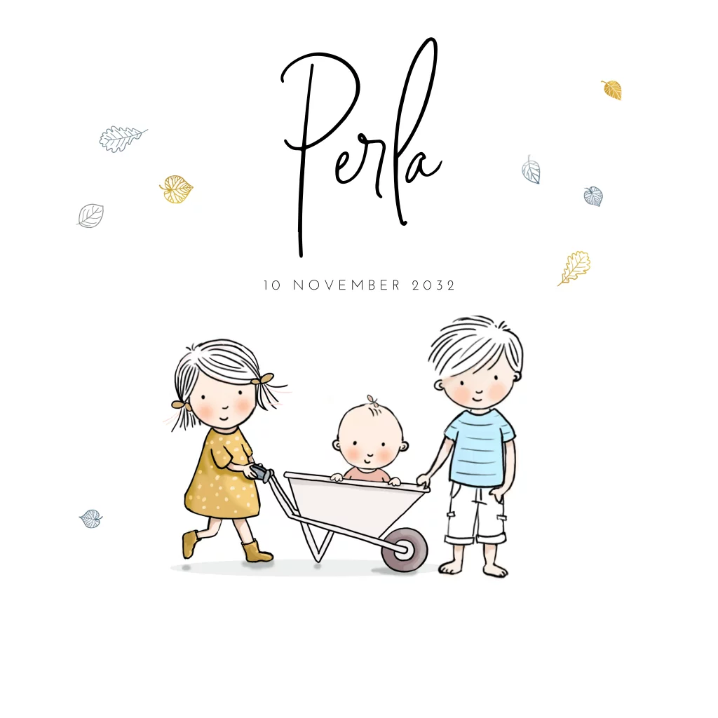 Geboortekaartje meisje in kruiwagen met grote broer en zusje. In de clipart staan ook andere kindjes. Zo kun je je kaart naar wens aanpassen.