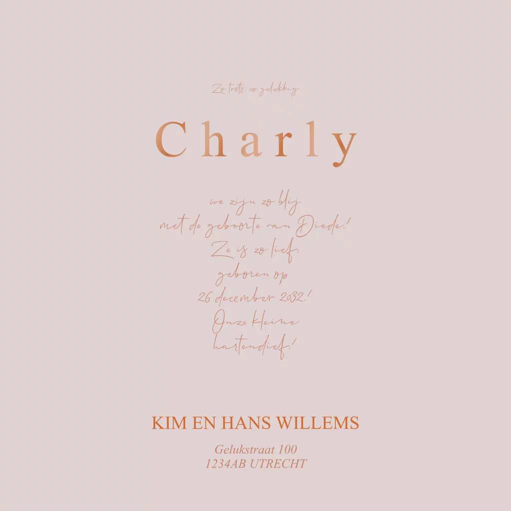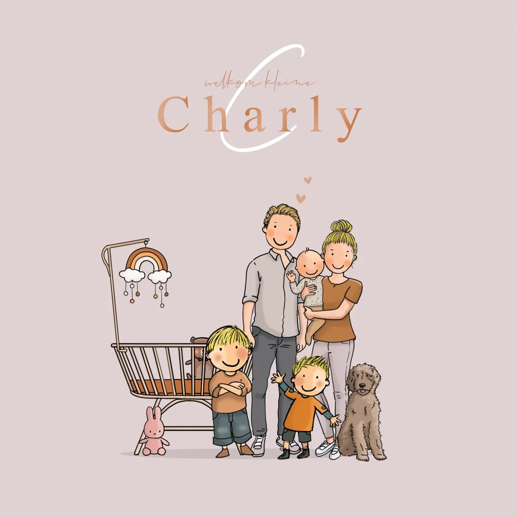 Geboortekaartje meisje met ouders zusje broer en rotanwieg