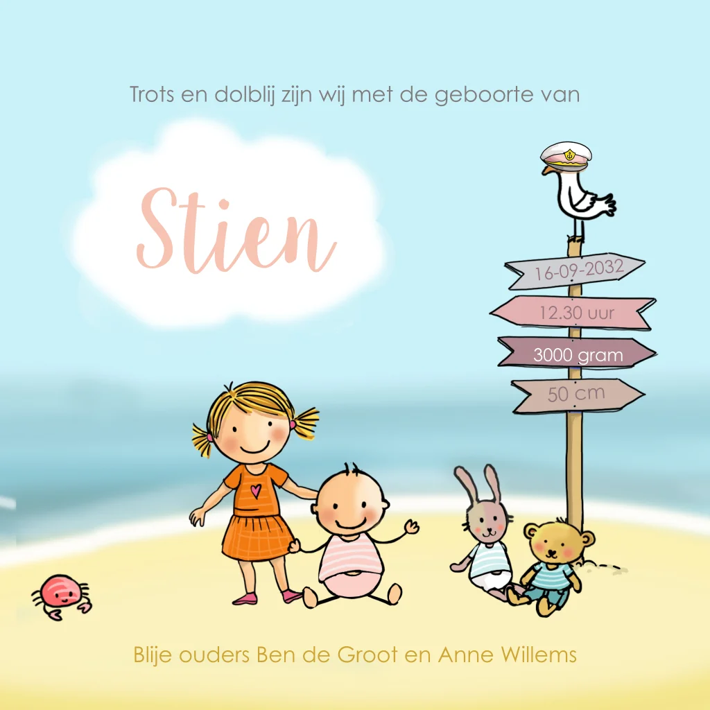 geboortekaartje meisje met zusje bootje met zee