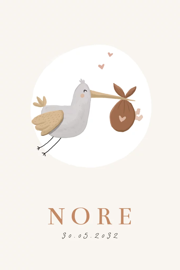 Geboortekaartje meisje ooievaar bruin grijs