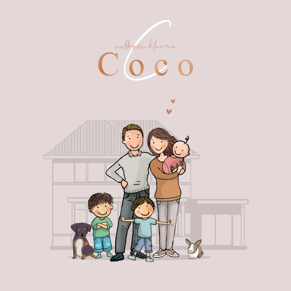 Geboortekaartje jongen met ouders en woonhuis. Onze geboortekaartjes zijn uniek en naar wens samen te stellen. In de clipart staan diverse illustraties van leuke ouders en kinderen. Zo maak je je eigen ontwerp. Bestel vandaag nog je geboortekaartje en maak je kaartje uniek met onze clipart!