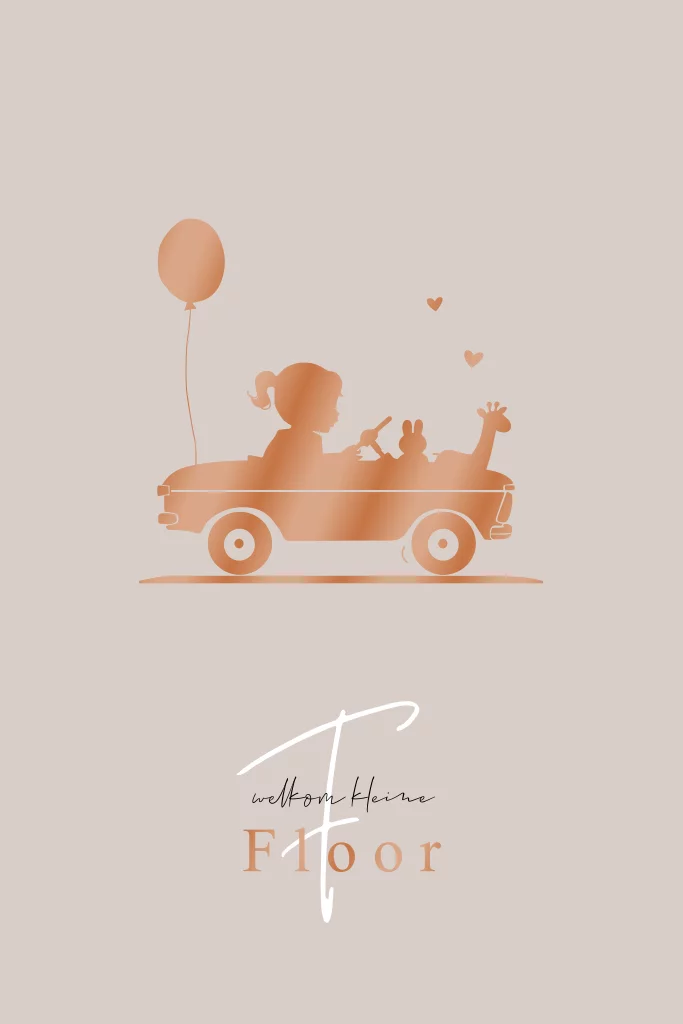 geboortekaartje meisje silhouet zwartfolie auto met kar
